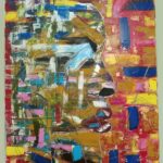 Obraz abstrakcyjny przedstawiający profil ludzkiej twarzy . Strukturalne elementy obrazu dodają głębi koloru.