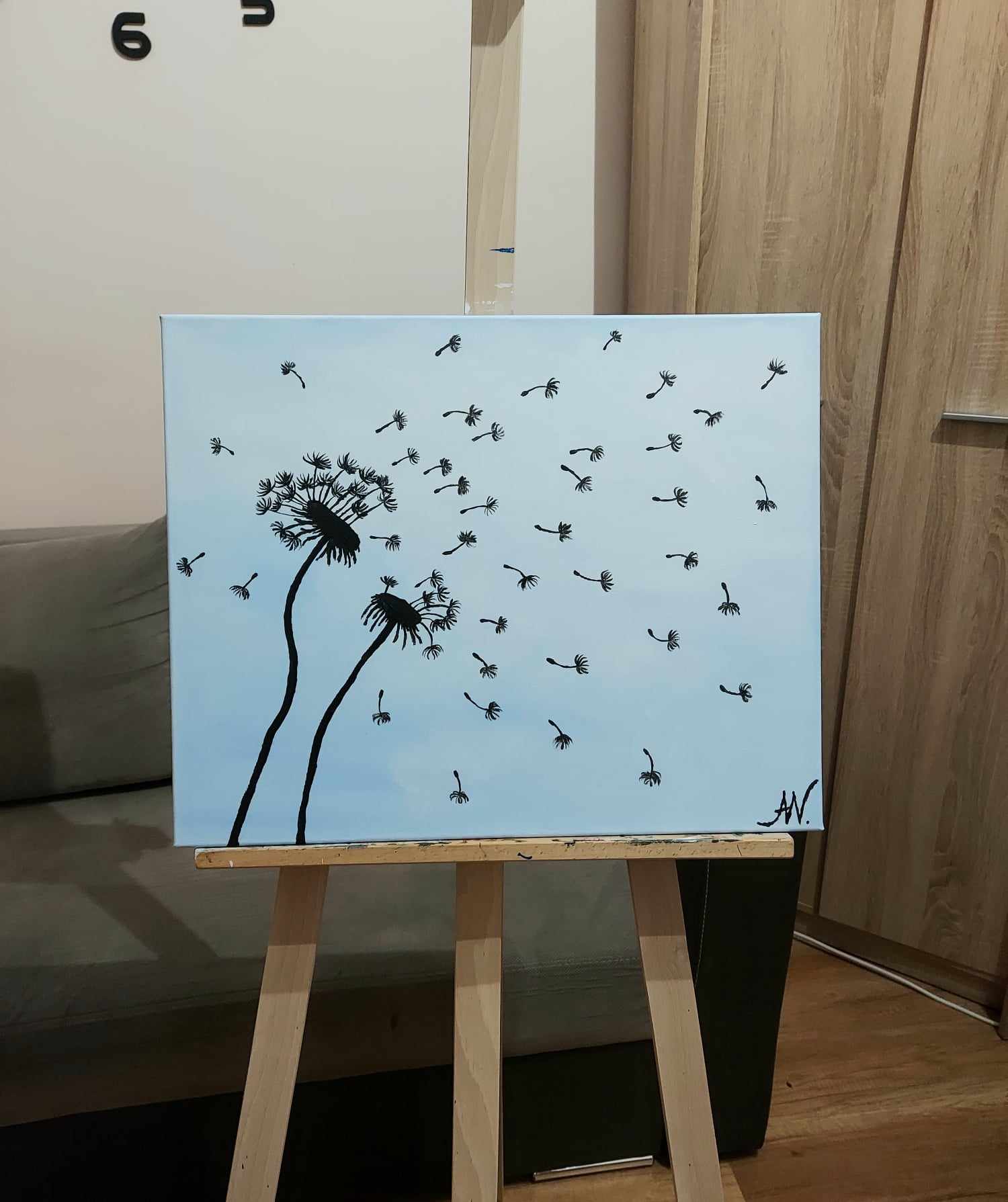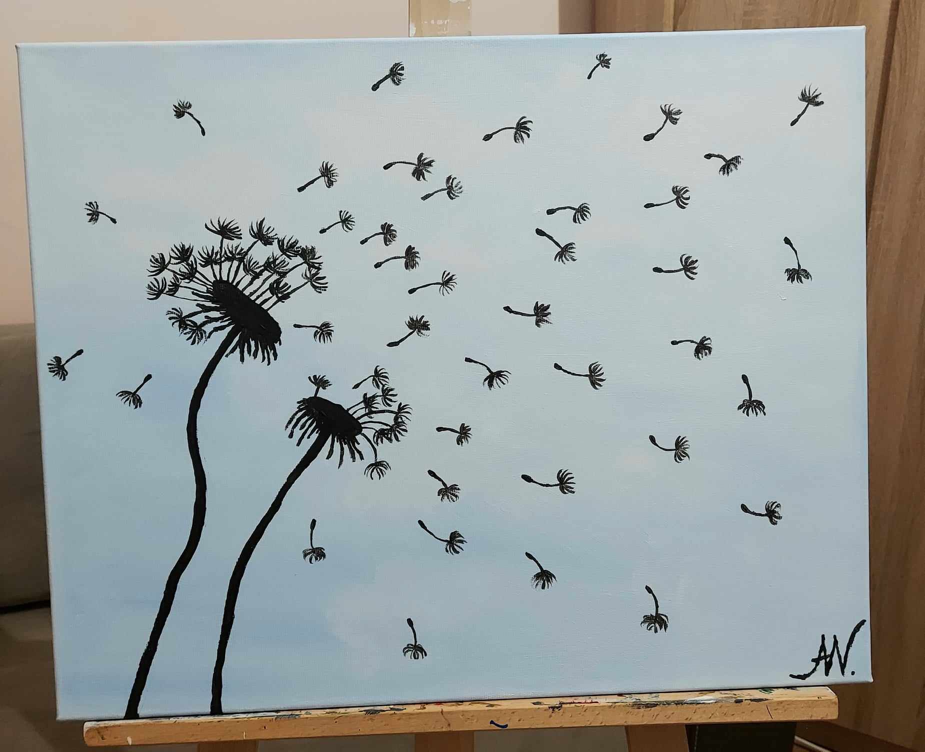 Każda chwila trwa tak krótko i szybko przemija co zainspirowało mnie do pokazania tego na płótnie – jest tak ulotna jak nasionko przekwitniętego mniszka lecące w dal na swoim małym spadochroniku i przemija . Dlatego korzystaj z każdej chwili i wykorzystuj ją jak najlepiej.