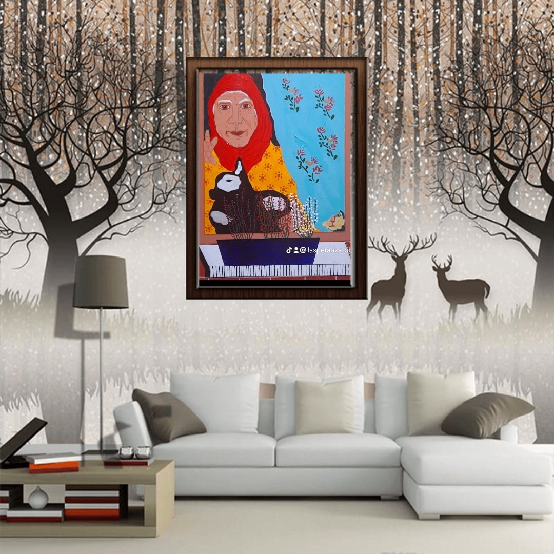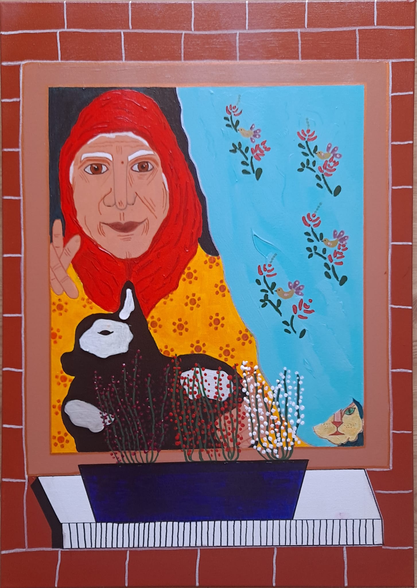Obraz inspirowany czasami pełnymi szczęścia i uśmiechu pomimo biedoty i trosk, akryle na podobraziu 40×50 cm. Zawerniksowany z połyskiem i sygnowany z przodu, boki zamalowane.