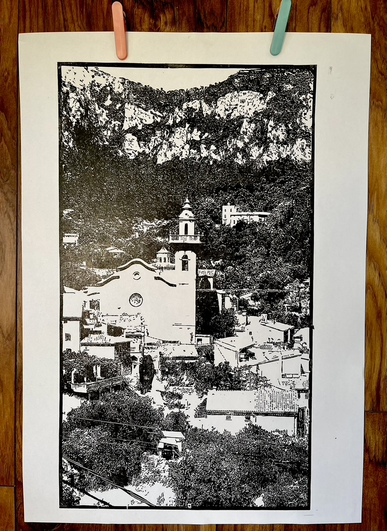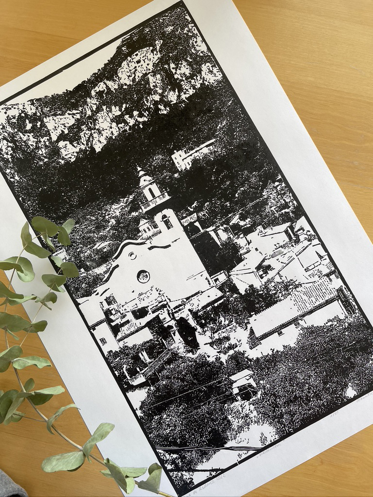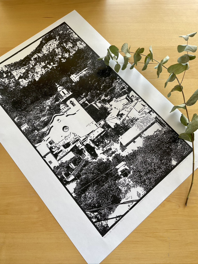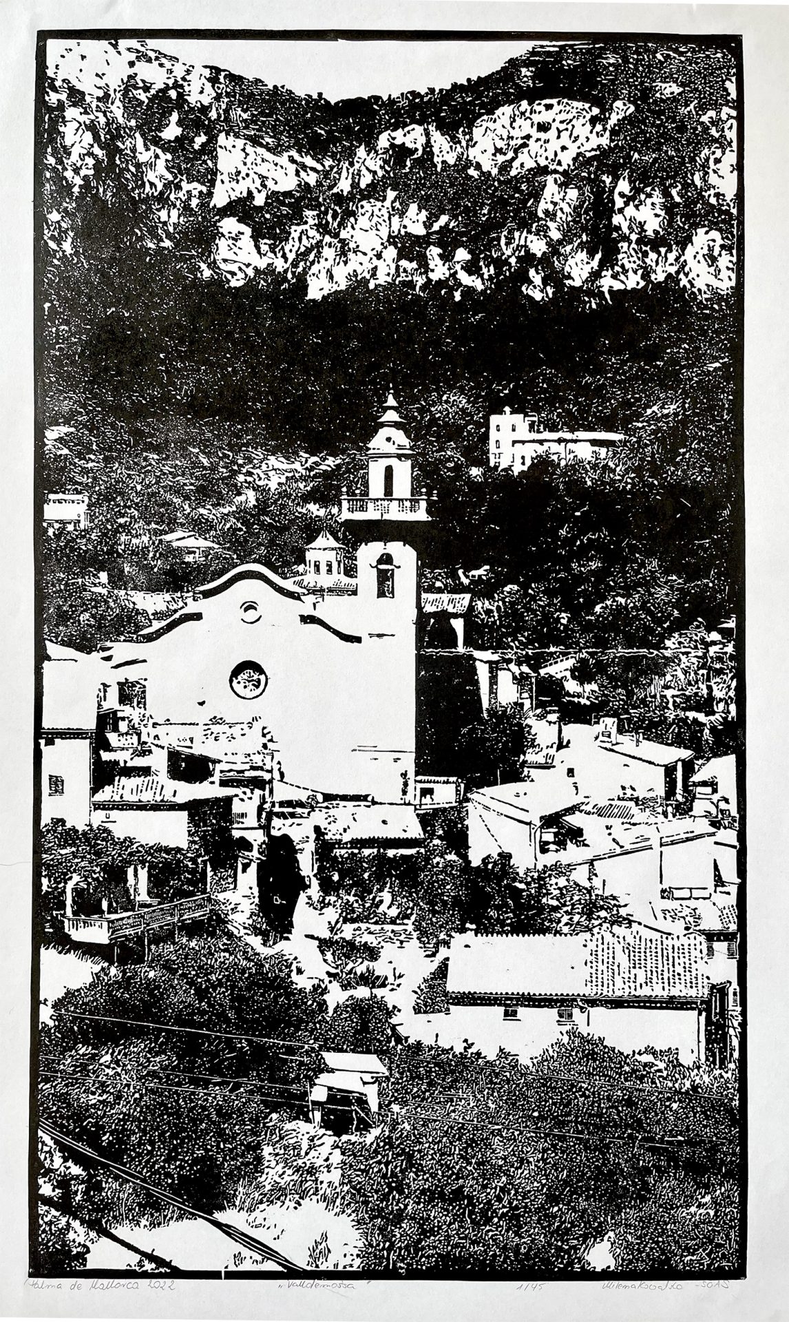 Oryginalny, ręcznie zaprojektowany, wykonany oraz odbity linoryt „Valldemossa”, to mój hołd dla piękna tego miejsca.