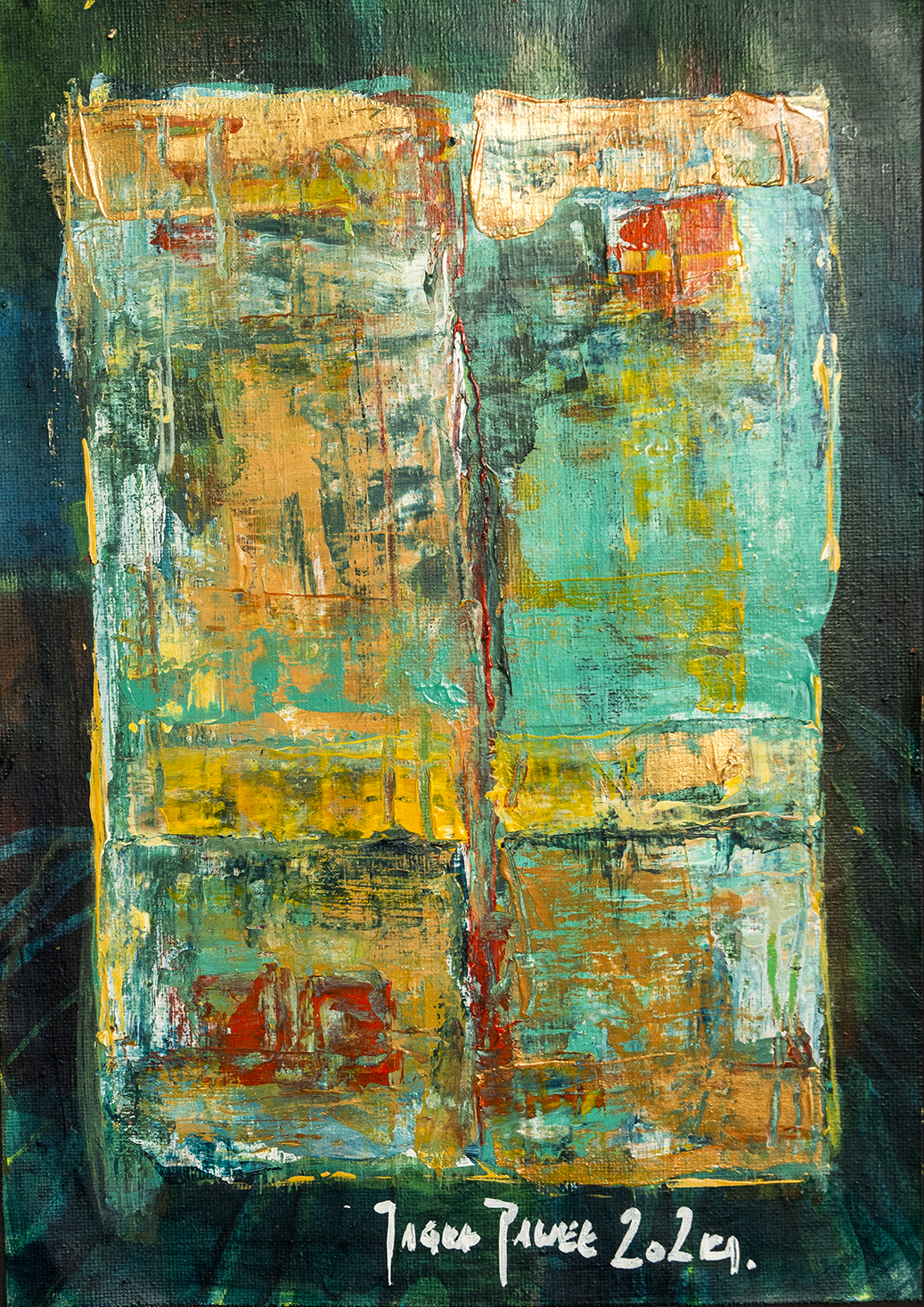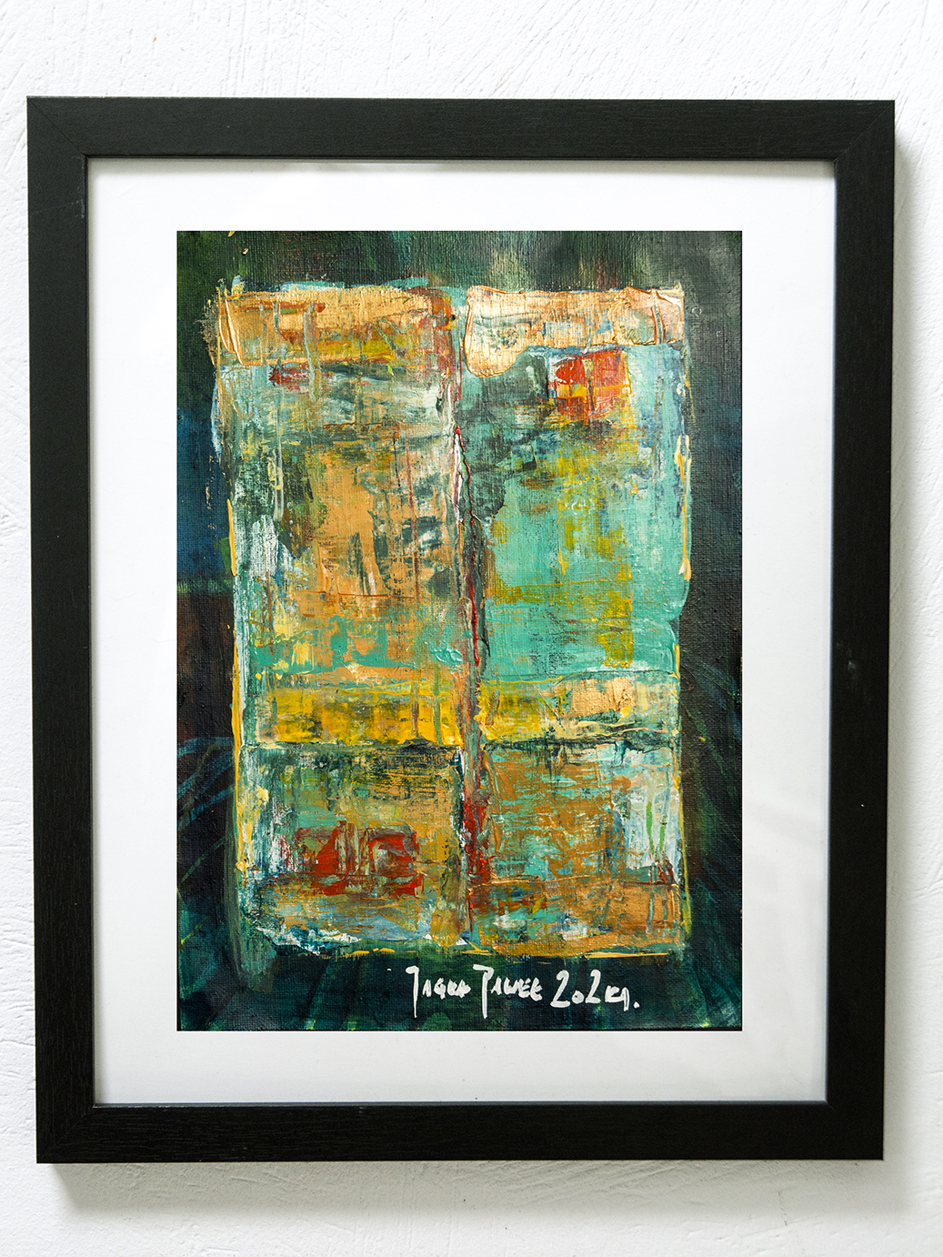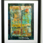 Praca wykonana na arkuszu płótna A4 gramatura 280gr. farbami akrylowymi Maxi Acril „Renesans” ,” Amsterdam” i werniksowana.Praca oprawiona autorska AFRP Paweł Jagła sygnowana z przodu i tyłu.Wymiar Ramki: 29,5 x 36,5 cm Tło czarne.