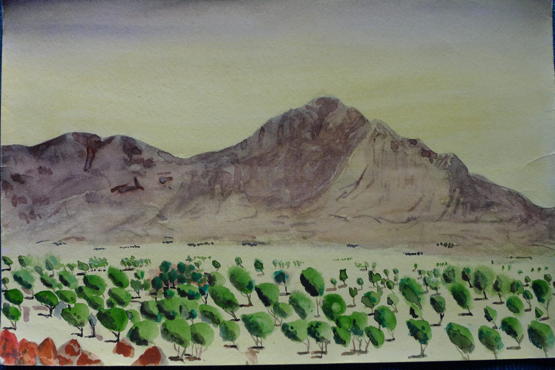 Ten obrazek jest efektem żmudnego studium nad techniką malarską sławnego aborygeńskiego akwarelisty Alberta Namajira, którego prace odkryłem w National Gallery of Australia w Canberze. Podziwiam jego styl – zaskakująco niefotograficzne i można powiedzieć „antyakwarelowe” ujęcie świata widzianego. Mogę z pokorą oświadczyć, że pan Albert Namajira to mój niedościgły mistrz.