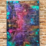 Obraz strukturalny stworzony różnymi mediami, piękne przechodzące przez siebie kolory, podkreślone złotem. Myślę, że w każdym wnętrzu będzie się pięknie prezentować.