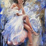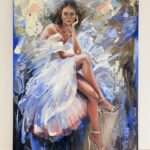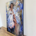 -Obraz malowany farbami olejnymi na płótnie bawełnianym o wymiarze 70x50cm, z niewielkimi dodatkami płatków srebra, rok wykonania 2024.