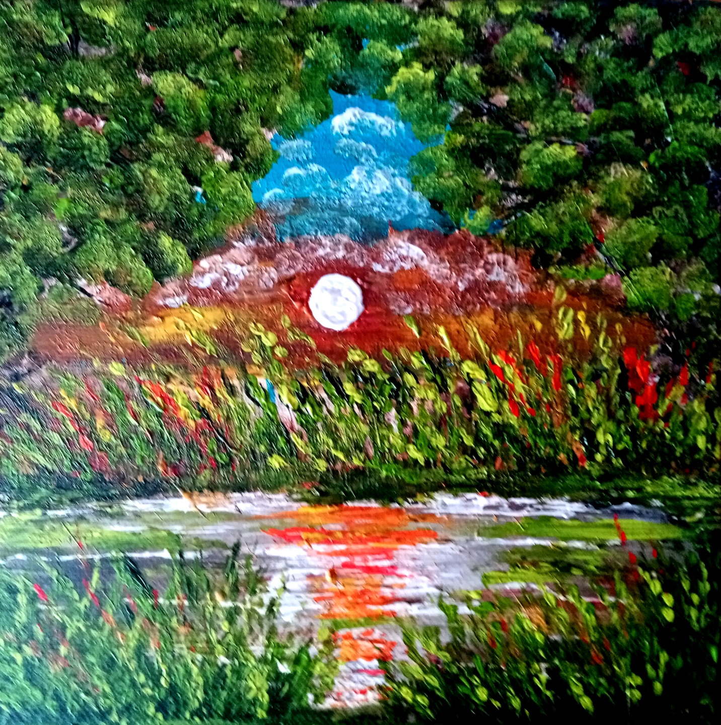 Obraz namalowany na profesjonalnym podobraziu . Płótno nabite na sosnowe krosno. Podobrazie posiada kołki rozporowe. Gramatura płótna 380 gr/m2. Użyte zostały wysokiej jakości farby akrylowe.Wymiary 20 x 20. Do pracy dołączam certyfikat. Jest to moja praca. Obraz jest sygnowany i zawerniksowany. Boki zamalowane w tonacji obrazu.
