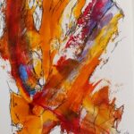 Praca łączy żywiołową ekspresję koloru z dynamiczną energią, której źródłem są odcienie czerwieni, żółci.. Kolory tworzą wirującą kompozycję pełną radości i pozytywnej wibracji. Całość stanowi wyraz ekspresji, radości i energii, które przekraczają granice jedynie wizualnego odbioru, oddziałując także na emocje odbiorcy.