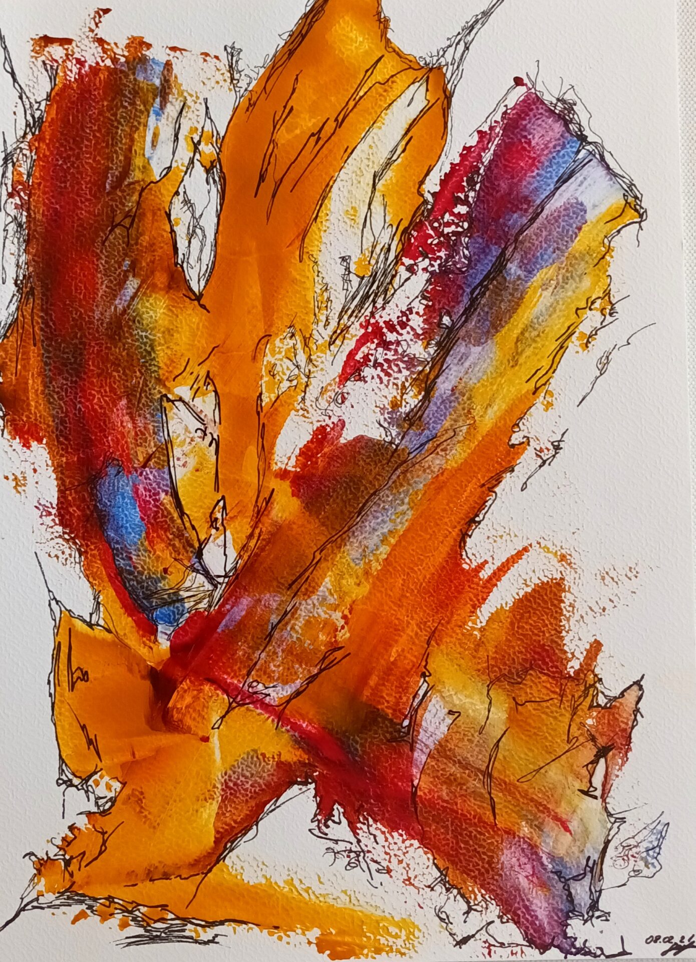 Praca łączy żywiołową ekspresję koloru z dynamiczną energią, której źródłem są odcienie czerwieni, żółci.. Kolory tworzą wirującą kompozycję pełną radości i pozytywnej wibracji. Całość stanowi wyraz ekspresji, radości i energii, które przekraczają granice jedynie wizualnego odbioru, oddziałując także na emocje odbiorcy.