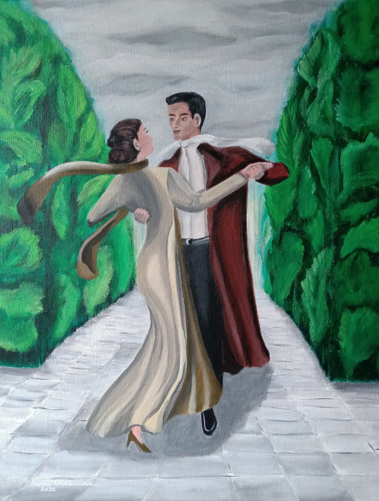 Obraz malowany farbami akrylowymi na płótnie. Zabezpieczony werniksem. Na życzenie mogę oprawić w prostą ramkę, boki są białe.