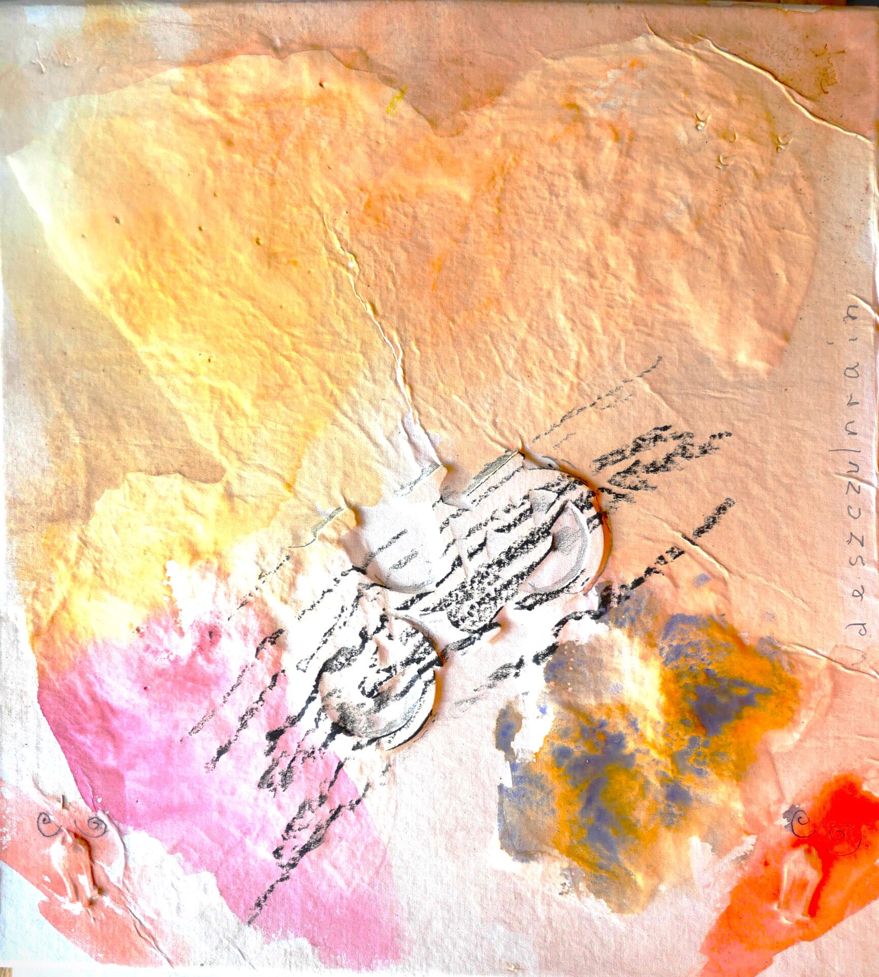 Akwarela na papierze .Najpierw na tekturę naklejam różne formy naj częściej papierowe lub podobne ale zawsze gotowe.