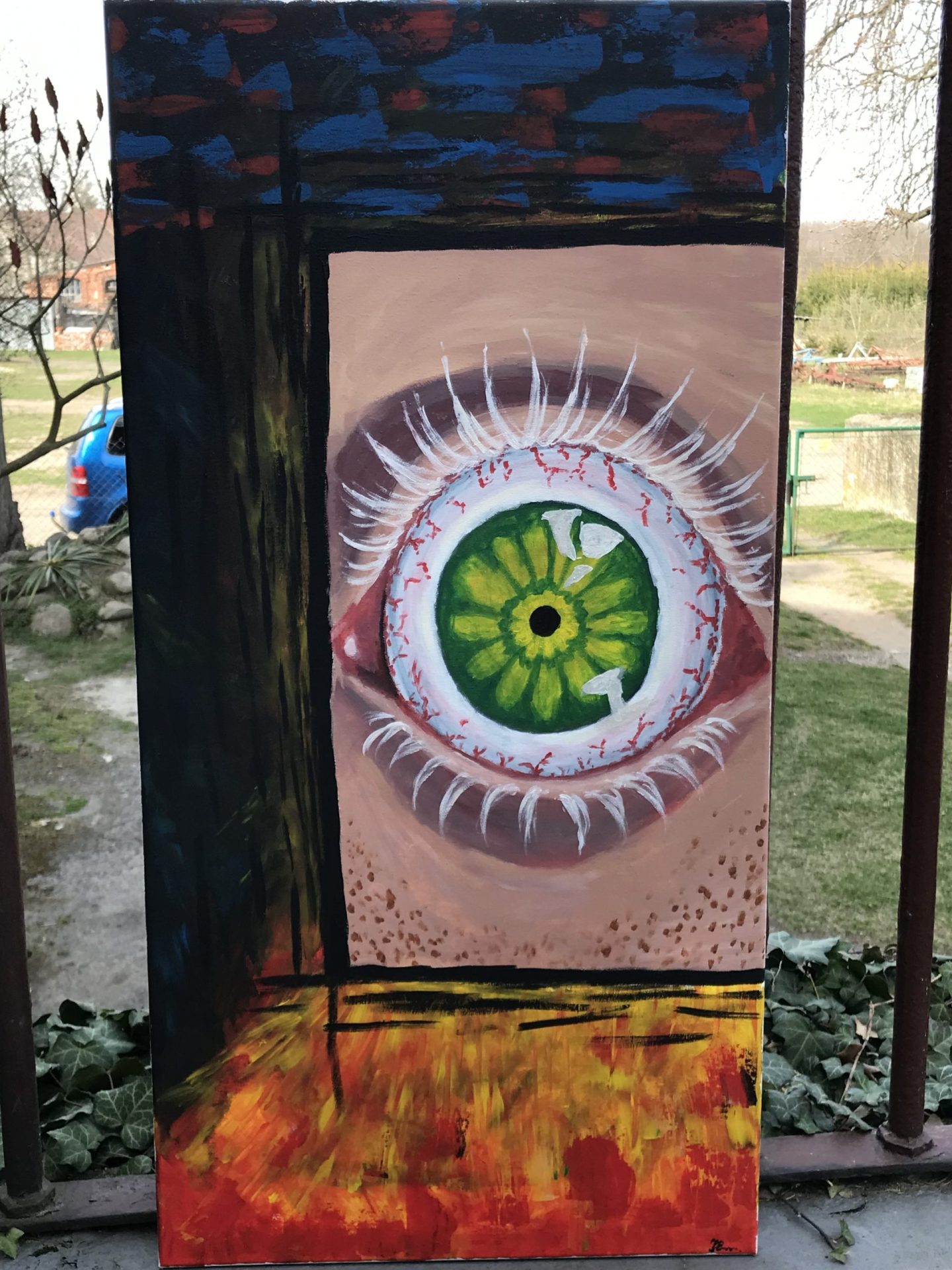 Obraz ręcznie namalowany farbami akrylowymi, nie werniksowany.
