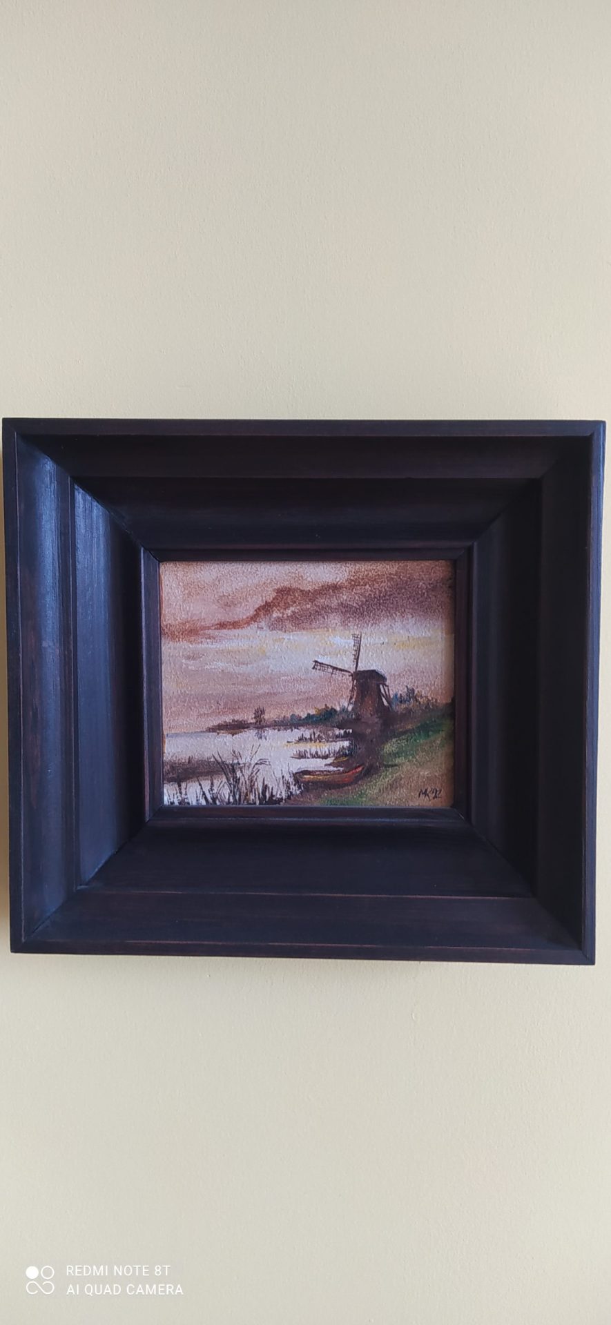 Obraz Mariana Knoblocha, znanego i cenionego śląskiego malarza. Wymiary obrazu 14×12 cm. Wymiary z ramą 22×20 cm.