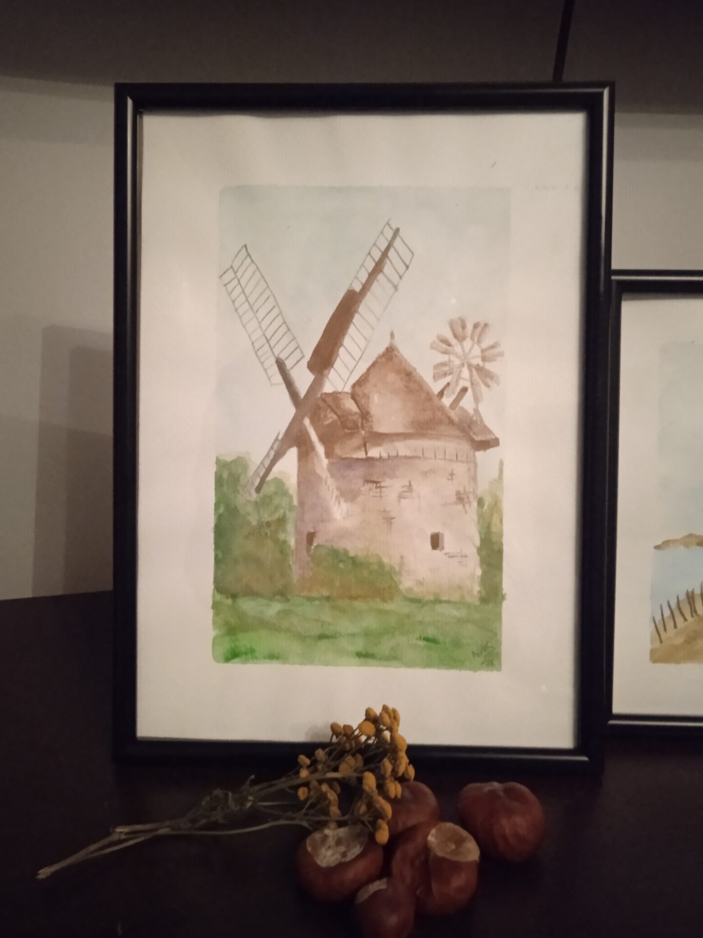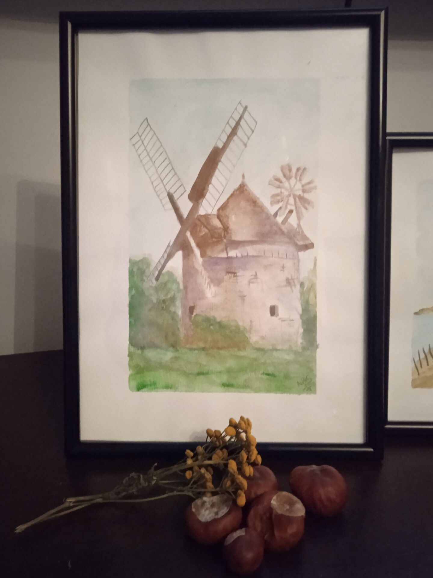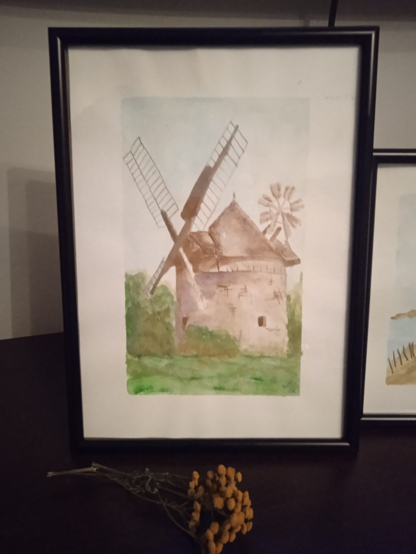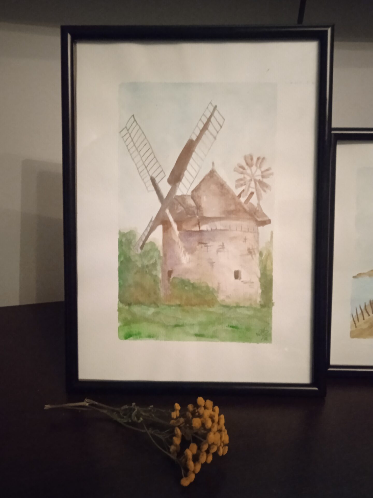 Obraz akwarelowy w brązowej ramce format A4 wykonany przeze mnie we wrześniu tego roku