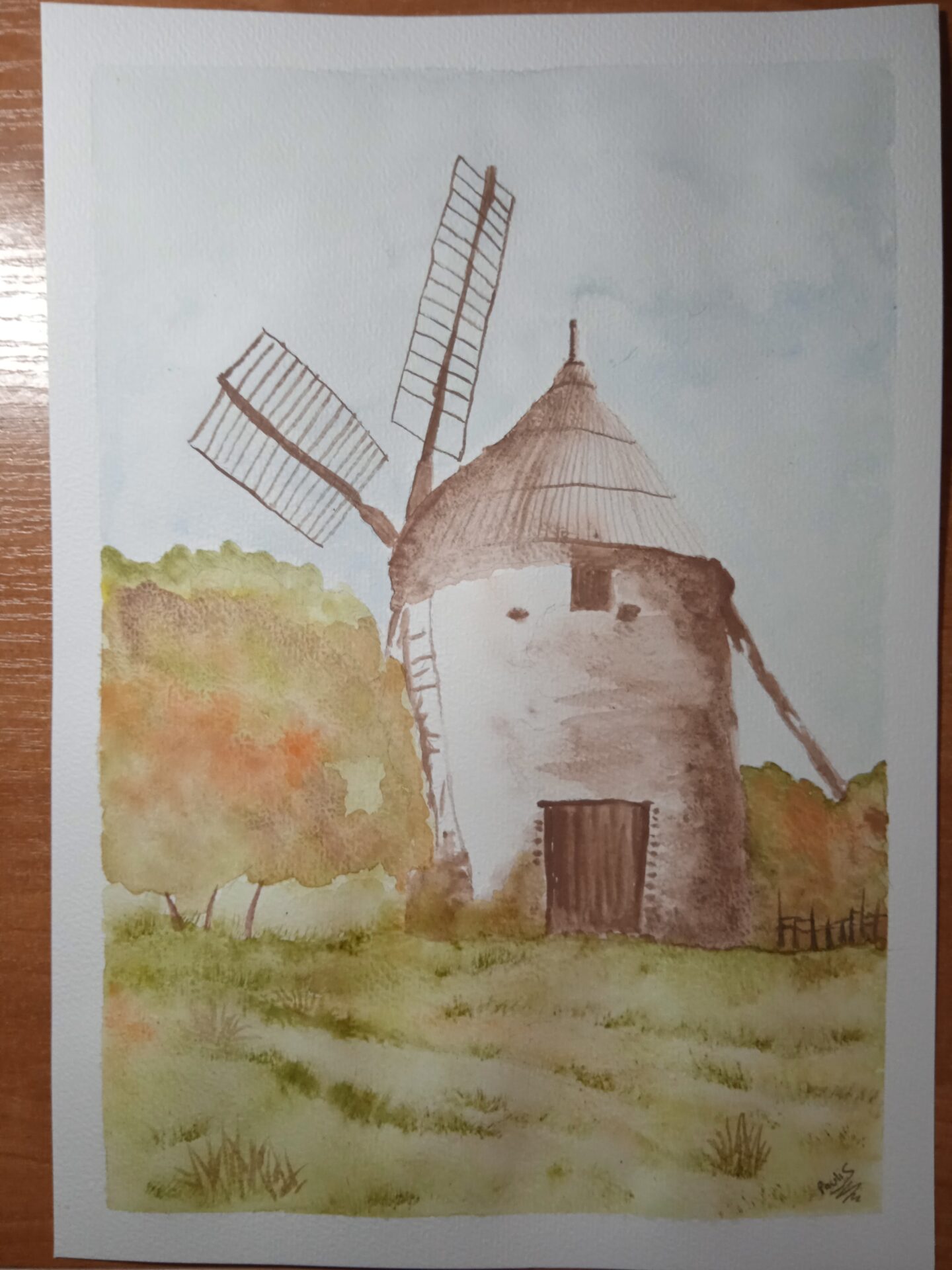 Obraz akwarelowy w brązowej ramce format A4 wykonany przeze mnie w październiku tego roku