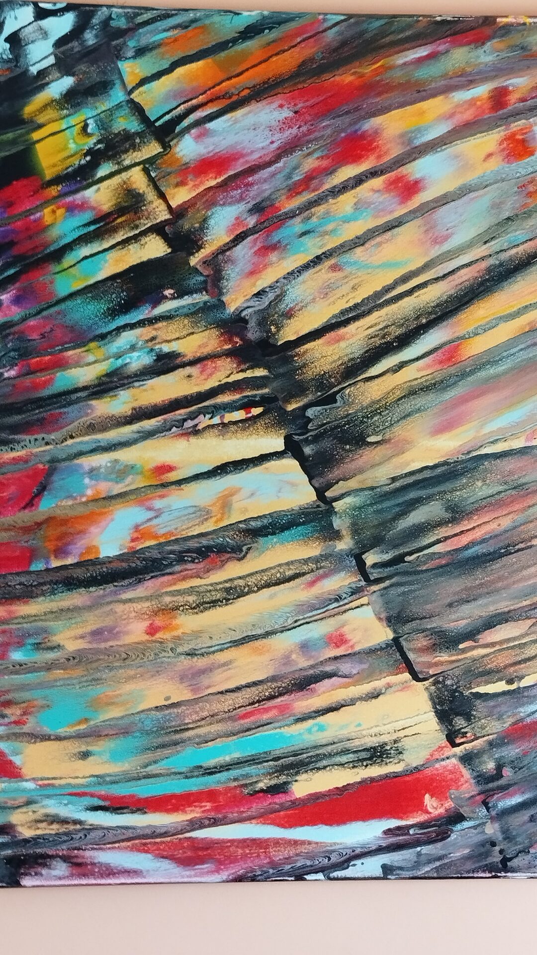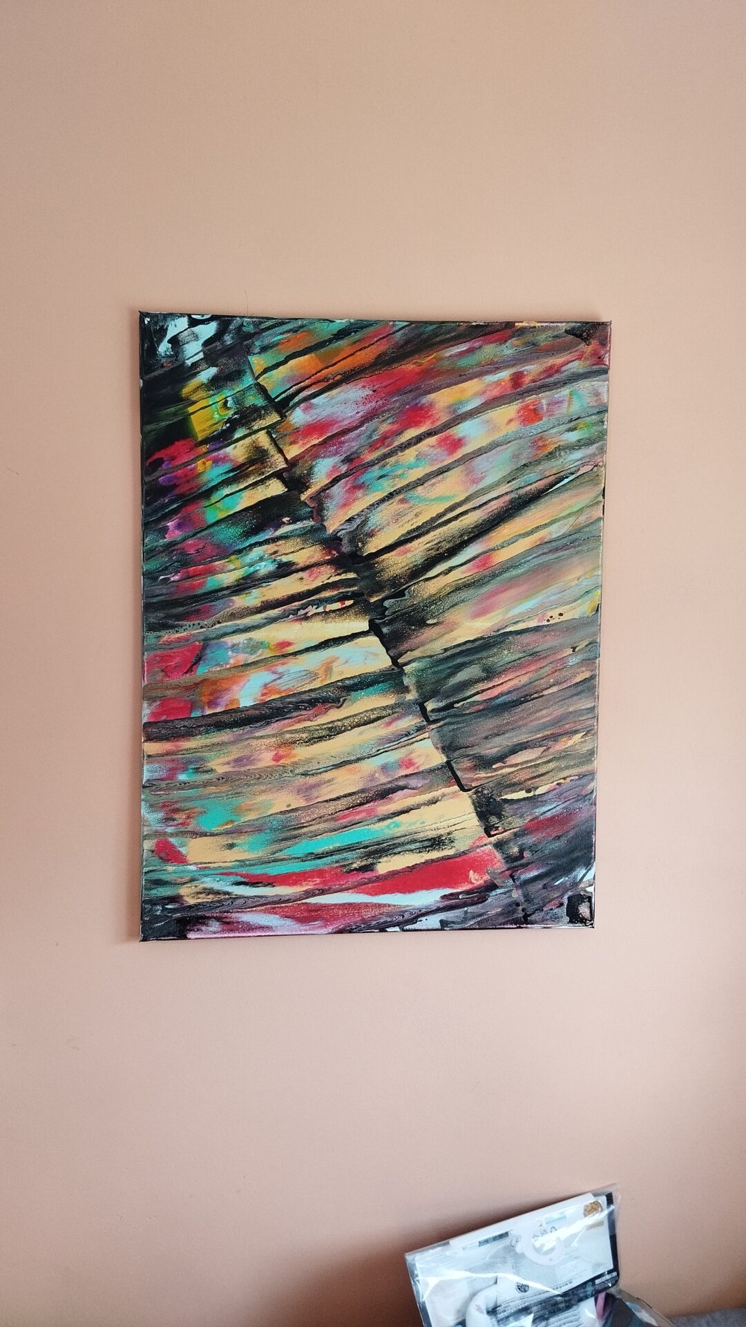 Pouring…mój pierwszy duży „obraz na blejtramie,werniksowany,boki zamalowane