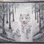 Jeden z moich wczesnych obrazów. Trochę groteska, coś innego. Obraz oprawiony w ramę kasetonową, stylizowaną na staroć. Szerokość samej ramy 1,5 cm, grubość od ściany 4 cm. Podane wymiary bez ramy.