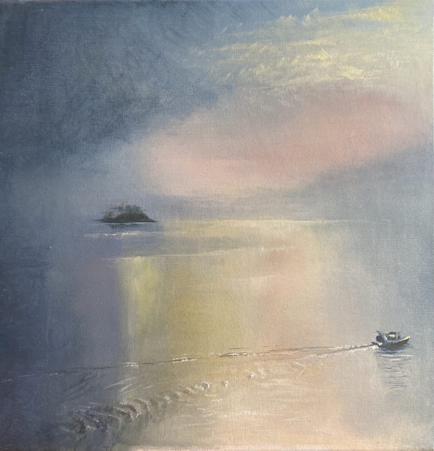 Olej na płótnie. Namalowany w 2020 roku. O wymiarach 40×40 cm. Żywa kolorystyka. Będzie pięknie prezentował się na ścianie w salonie. Dobra sztuka to zawsze dobry pomysł na prezent.