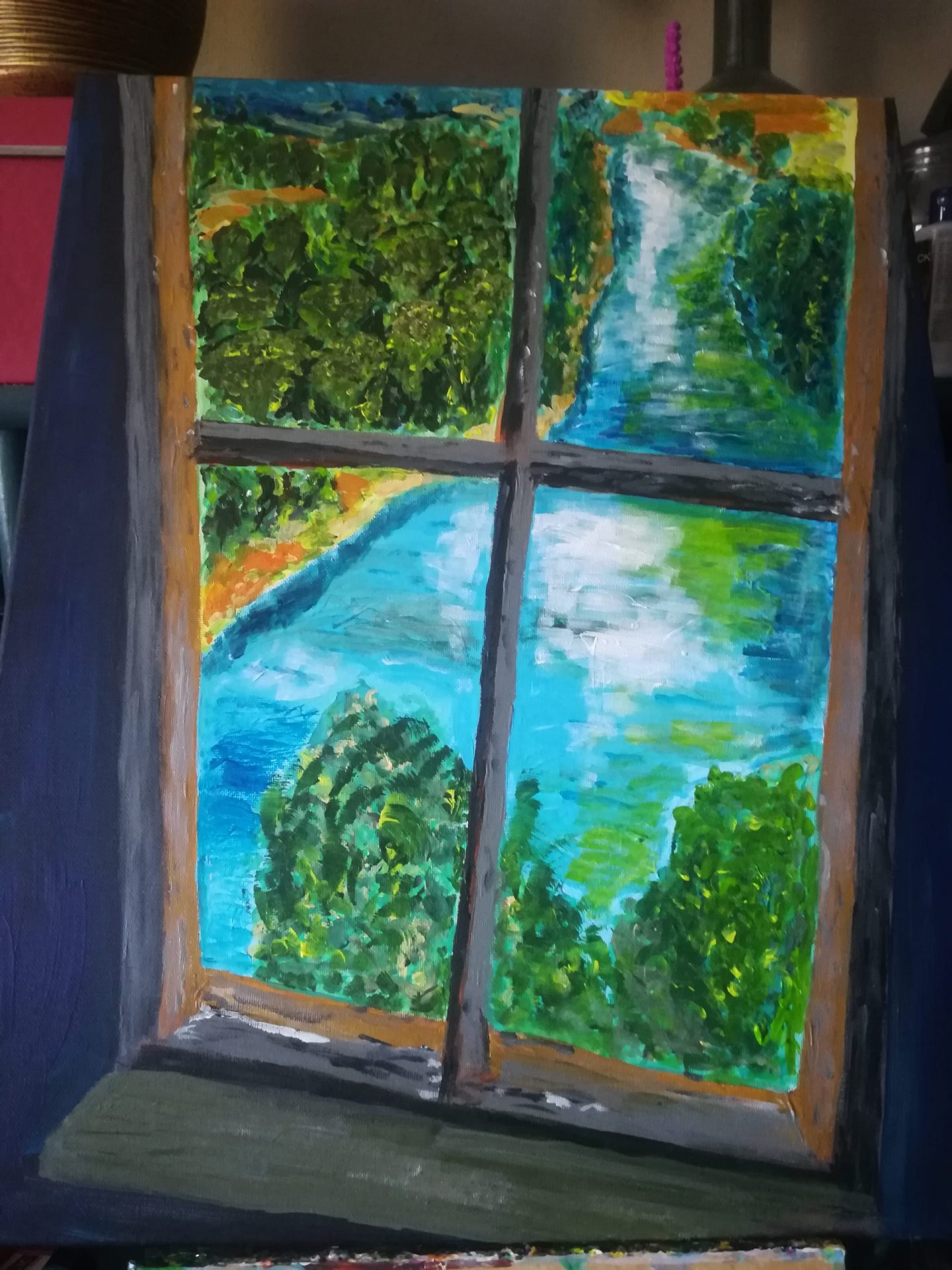 obraz ręcznie malowany na płótnie , farby akrylowe , boki zamalowane , pokryty werniksem matowym