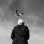 Fotografia przedstawia kobietę karmiacą mewy na plaży w Międzyzdrojach.