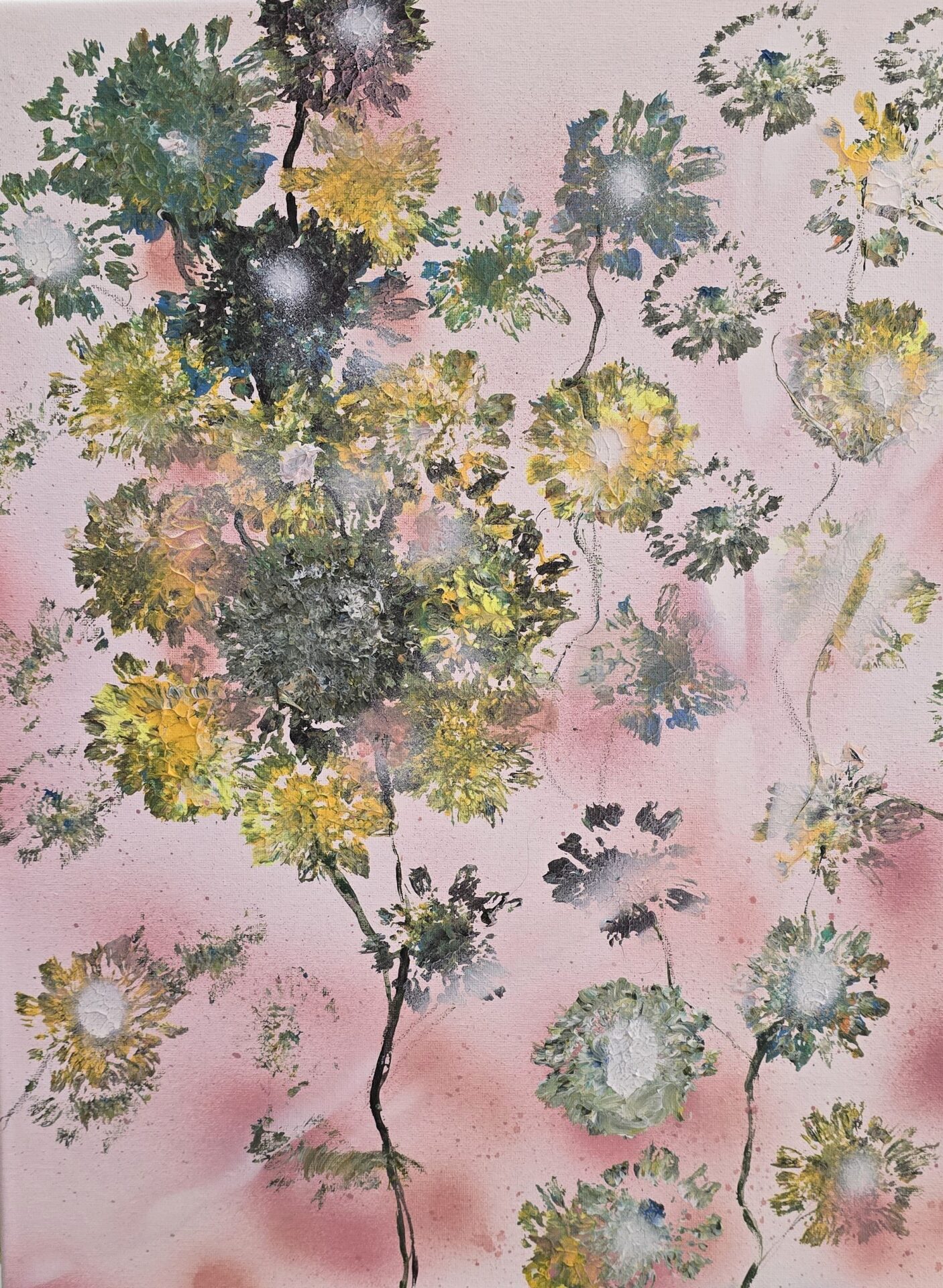 Obraz akrylowy ręcznie malowany na płótnie naciągniętym na bjetram drewniany.