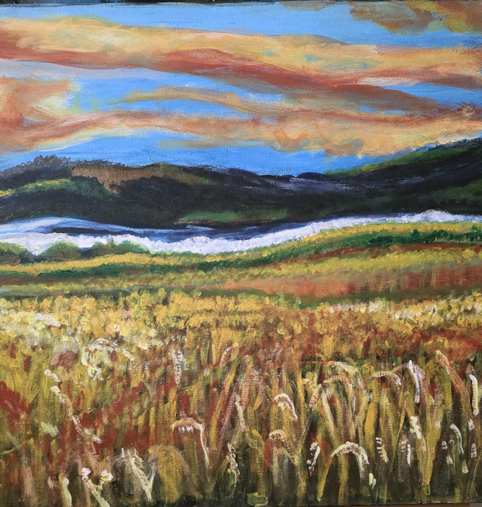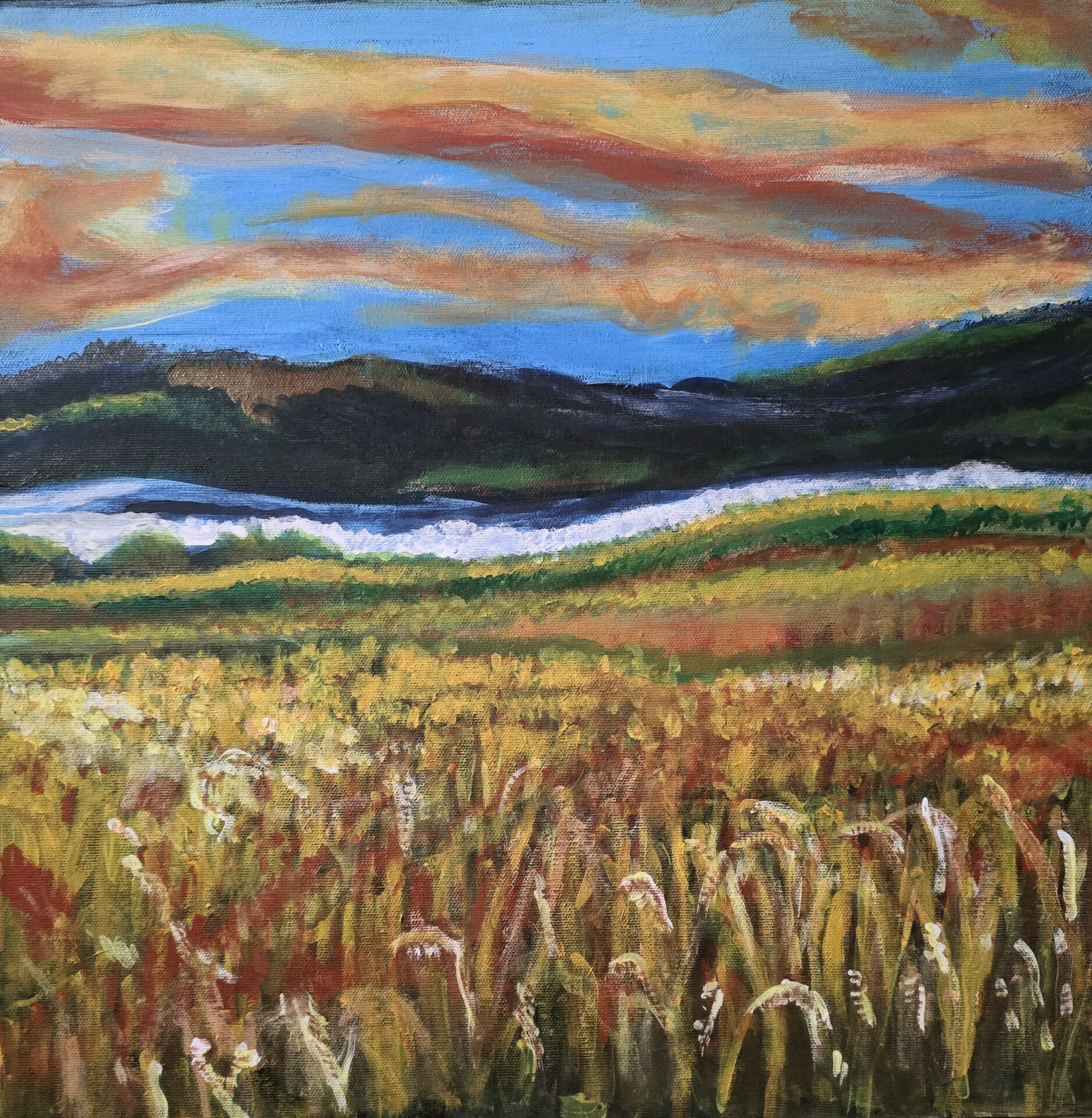 Obraz akrylowy ręcznie malowany na płótnie naciągniętym na bjetram drewniany.