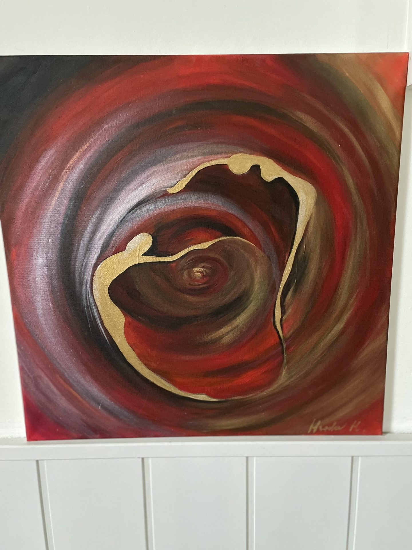 Obraz inspirowany wielkim uczuciem. Ukazuje dwoje kochanków w wirze namiętności.