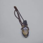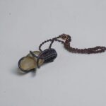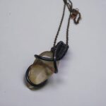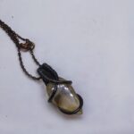 Wisiorek z Kwarcu Rutylowego posiada delikatne złote inkluzje wykonany z miedzi na łańcuszku.Pokryty oksydą w celu nadania efektu patyny.Zrobiony metodą wire wrapping.Długość wisiorka 3 cm łańcuszka 45 cm.Zamiast łańcuszka mogę dodać rzemień,jak i dopasować długość łańcuszka.