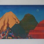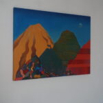 Przedstawiam Państwu kolejny obraz, który został niedawno ukończony. Praca nad nim trwała około roku i za każdym razem kiedy wracałam do niego pojawiały się nowe pomysły na jego ukończenie. Każda góra ma swój osobny charakter, jednak w razem tworzą spójną kompozycyjną całość . Inspiracją do namalowania tego obrazu były tak zwane kolorowe góry znajdujące się min w Peru, Argentynie w Chinach i innych zakątkach świata. Na ich podstawie chciałam stworzyć krainę, wyimaginowany świat, który zaprasza odbiorcę swoimi kolorami i formą, pobudza wyobraźnię oraz będzie miłym i ciekawym urozmaiceniem wnętrza.