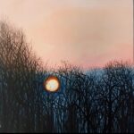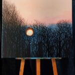 „Wschód słońca” to obraz, który powstał zimą. Kula ognia- słońce ogrzewa zmarznięte drzewa, dodając całej scenie ciepłego kolorytu. Jest ono symbolem nadziei na dobry dzień. Obraz wykonany akrylami, na płótnie 80×80