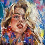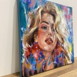• Obraz malowany farbami olejnymi na płótnie bawełnianym o wymiarze 50x50x3cm, rok wykonania 2024.