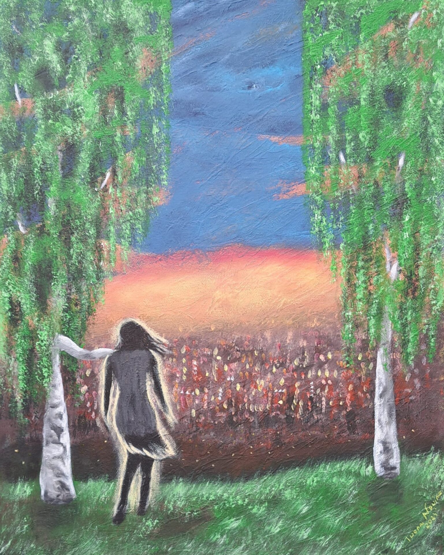 Inspiracją do namalowania tego obrazu był ciąg niemiłych wydarzeń w moim życiu, które jednak przyciągnęły z innej strony dobro. Stąd nazwa Wsparcie, by nigdy nie tracić nadziei. Projekt całkowicie autorski.