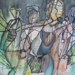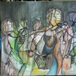 Obraz abstrakcyjny wykonany w technice olejnej na podobraziu płóciennym .