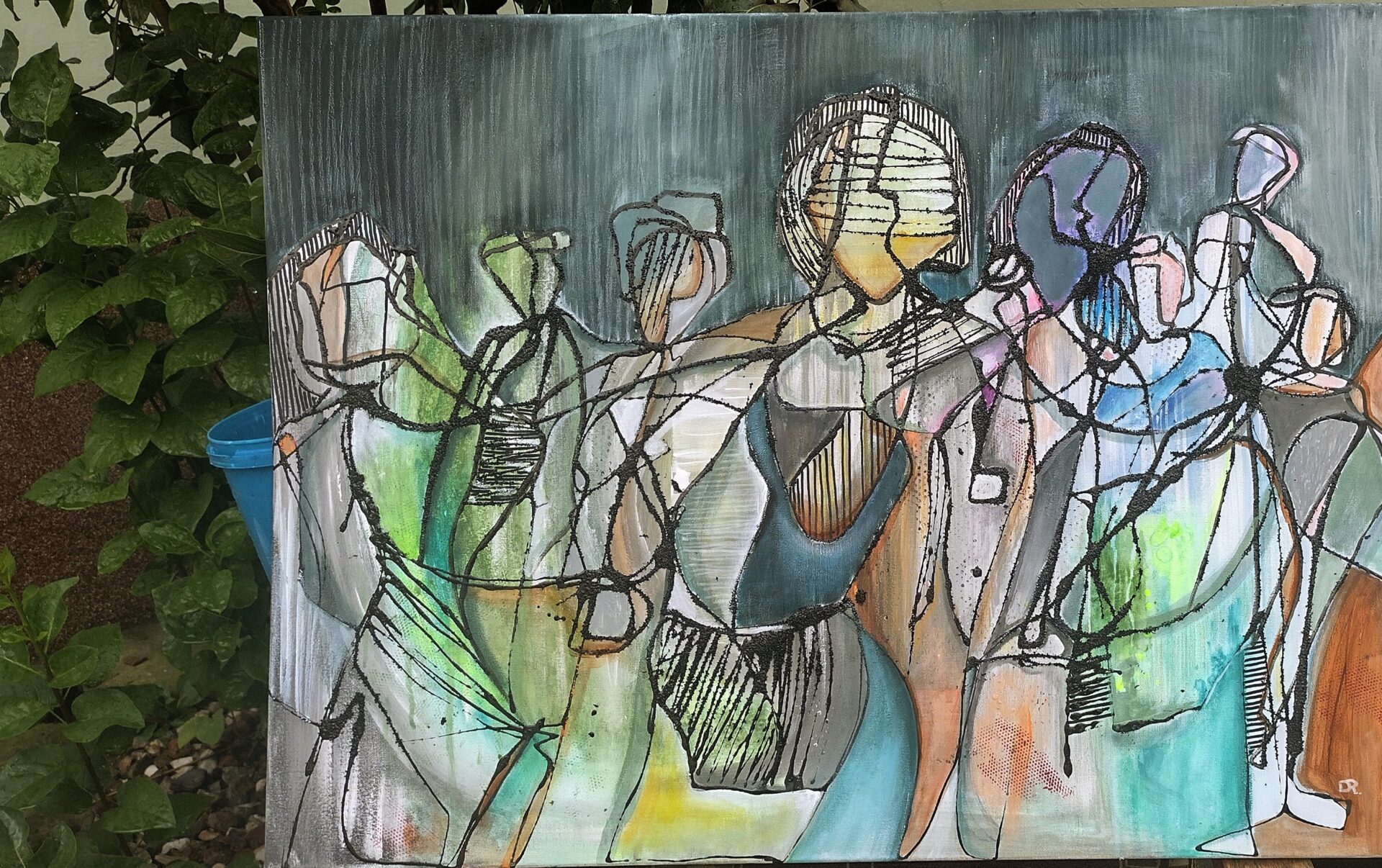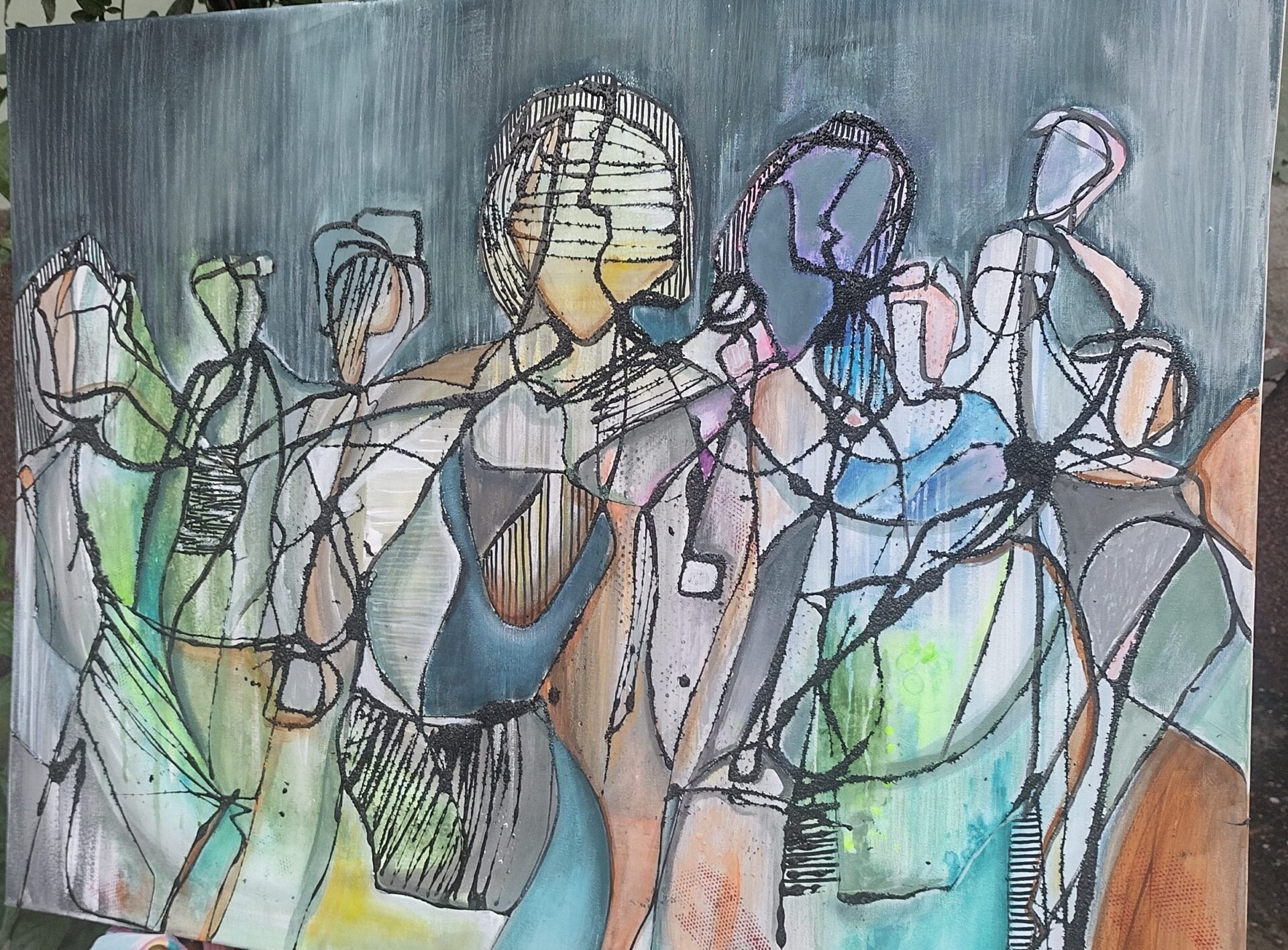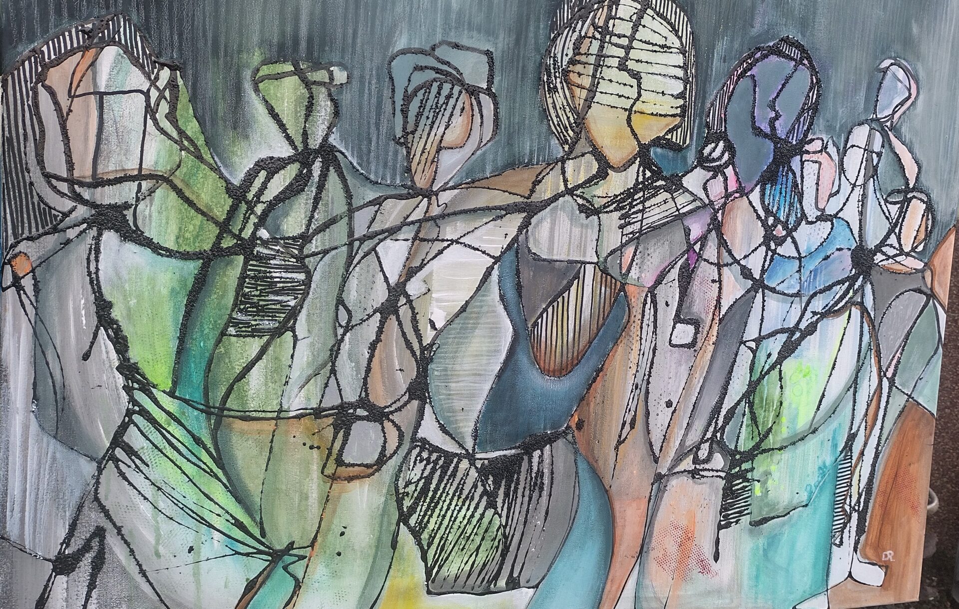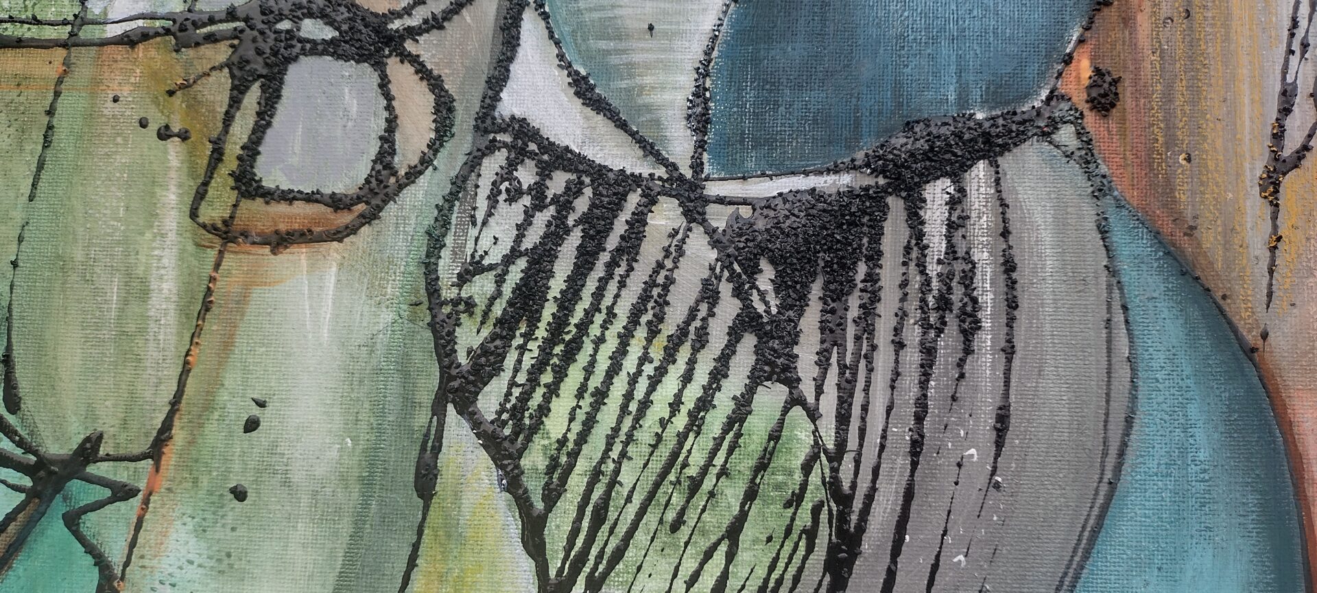 Obraz abstrakcyjny wykonany w technice olejnej na podobraziu płóciennym .