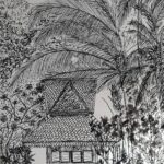 Obraz Doroty Ratajczak. Wykonany techniką tuszu na papierze. Posiada metalową ramkę w kolorze czarnym.