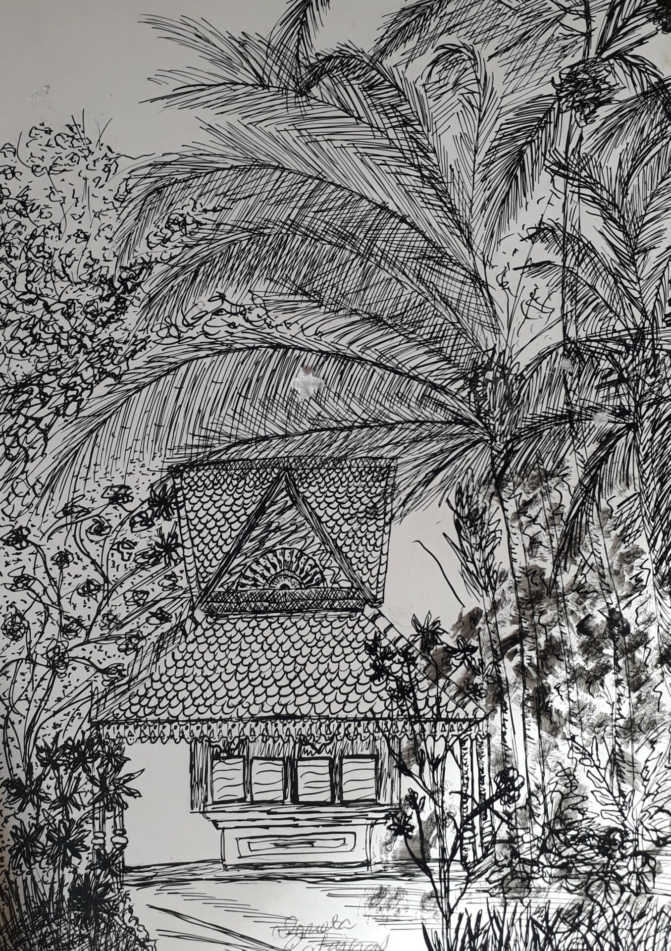 Obraz Doroty Ratajczak. Wykonany techniką tuszu na papierze. Posiada metalową ramkę w kolorze czarnym.