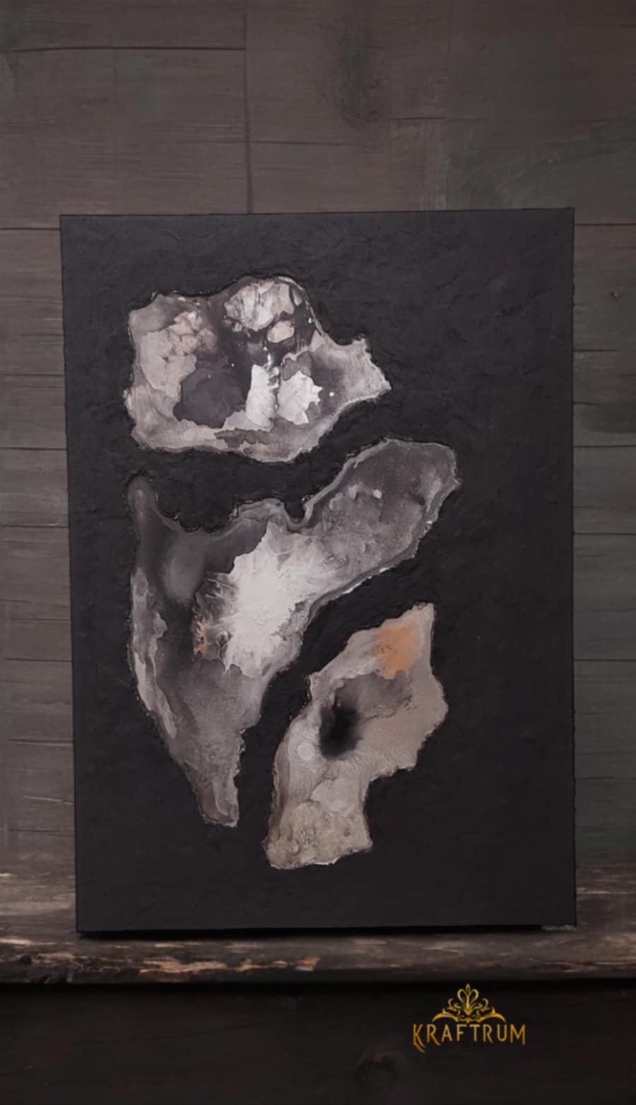 Struktura, w połączeniu z akrylami i tuszami alkoholowymi, tworzy przestrzenną powierzchnię w neutralnych kolorach. I dlatego dopasuje się do każdego wnętrza.