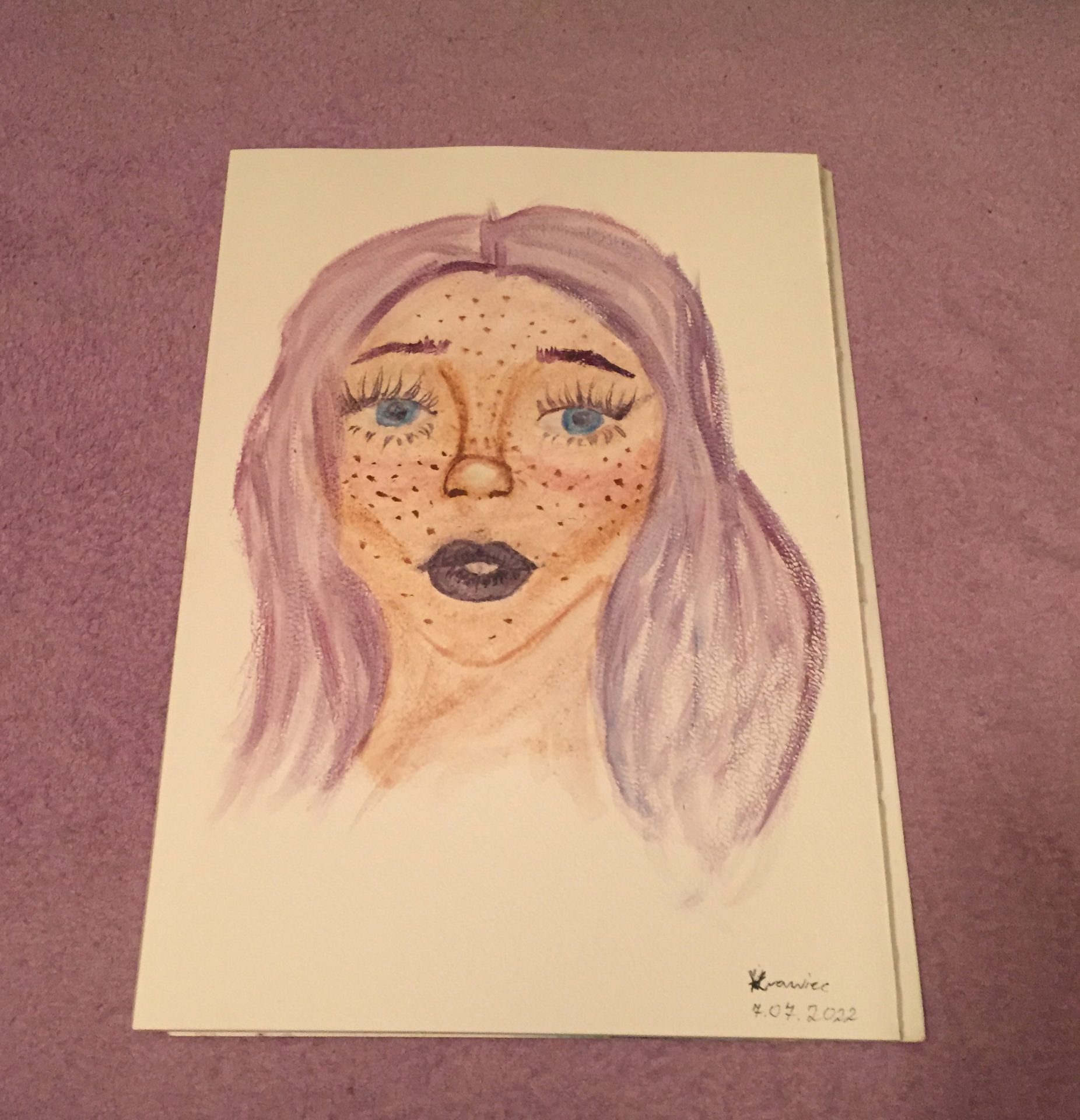 Obraz akwarelą wykonany prze zemnie 07.07.2022r. na formacie a4 na kartce 300GSM. Od dawna nic nie robiłam akwarelą, wciąż się uczę malować/rysować