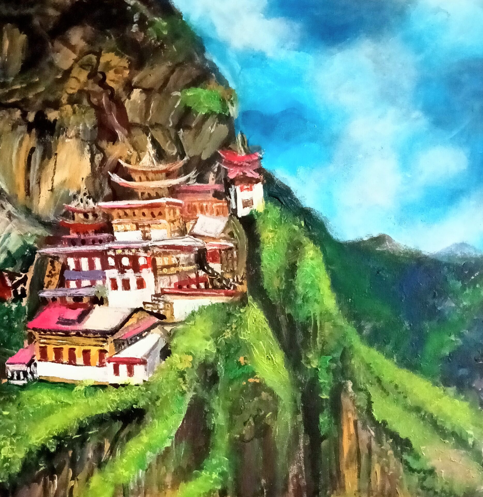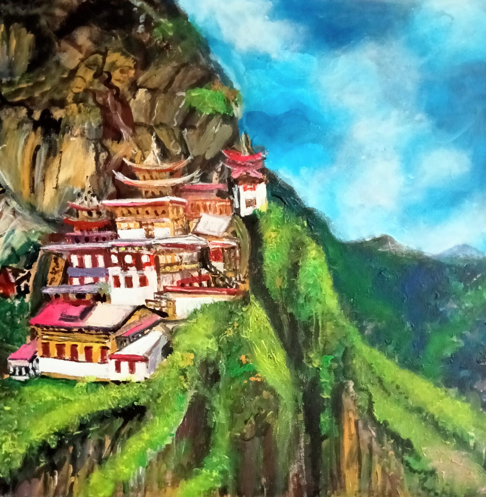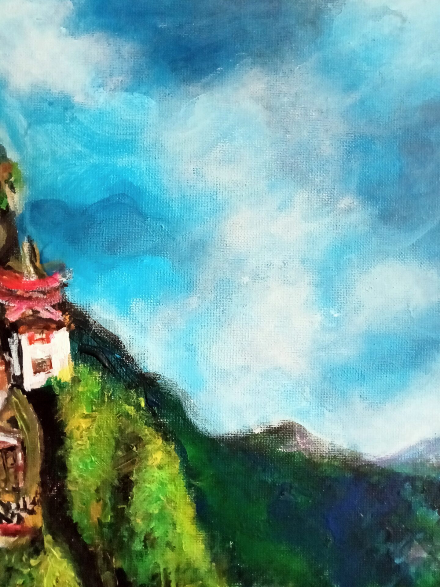 Obraz akrylowy ręcznie malowany na płótnie naciągniętym na bjetram drewniany.