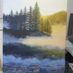 Przedstawiam obraz mojego autorstwa, ukazujący zachód słońca spowity mgłą, nad jeziorem. Praca do złudzenia przypomina fotografię co było dużym wyzwaniem i wymagało dużo pracy. Został namalowany pędzlem, profesjonalnymi farbami akrylowymi ( firm: Winsor & Newton, Amsterdam, Liquitex) na podobraziu malarskim o wysokiej jakości. Wymiary: 50 x 70 cm. Wykończony i zabezpieczony został werniksem. Podpis autora znajduje się na awersie. W razie dodatkowych pytań zapraszam do kontaktu.