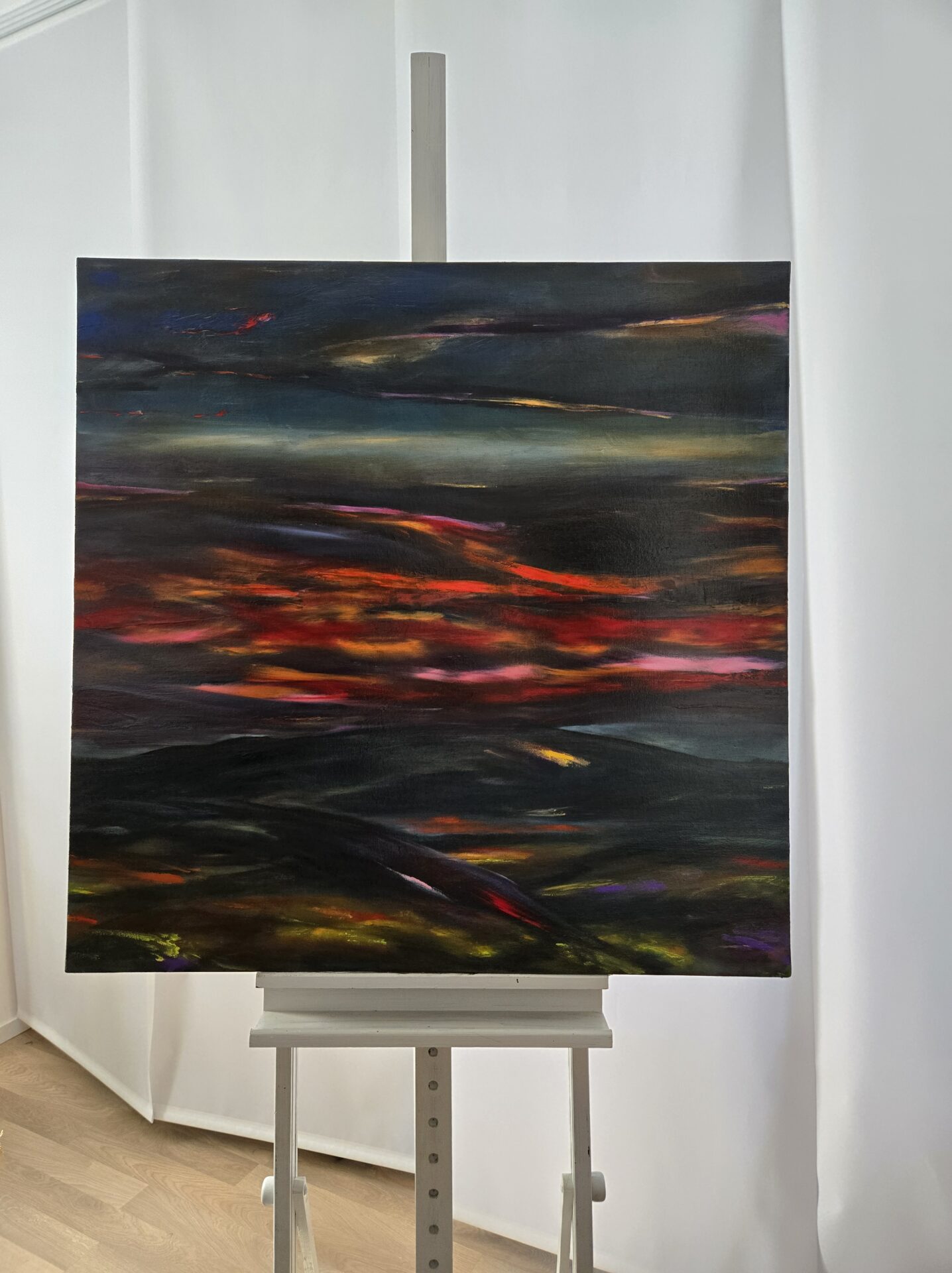 Pełen ekspresji obraz przedstawia zachód słońca po letniej burzy. Obraz nie jest oprawiony. Można go też zawiesić bez ramy. Będzie świetnie wyglądał w nowoczesnym wnętrzu.