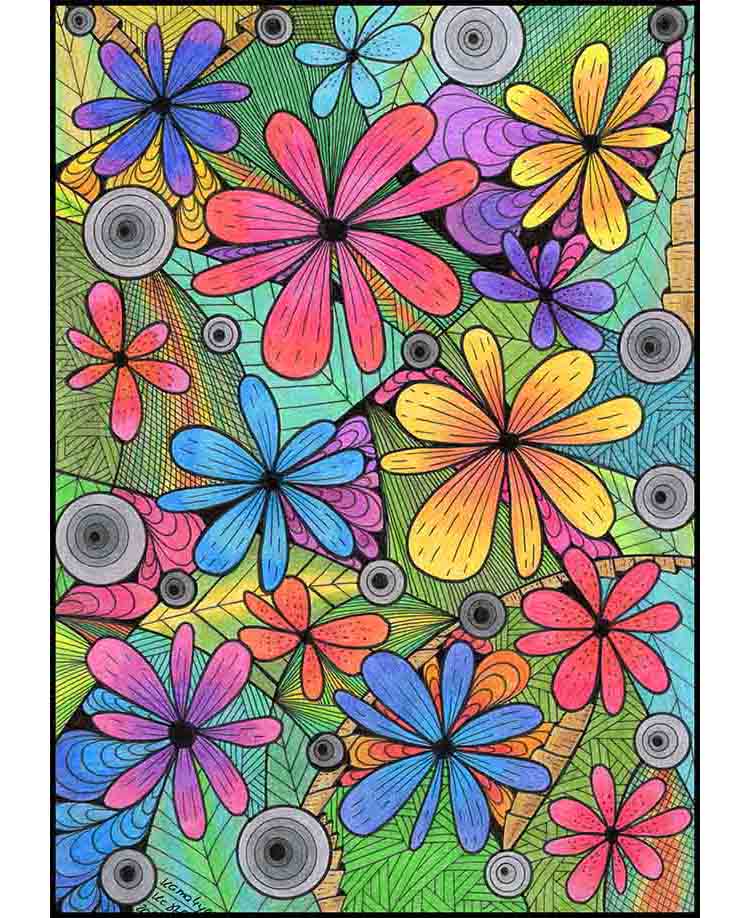 „ZACZAROWANY OGRÓD” – autorski, sygnowany rysunek.