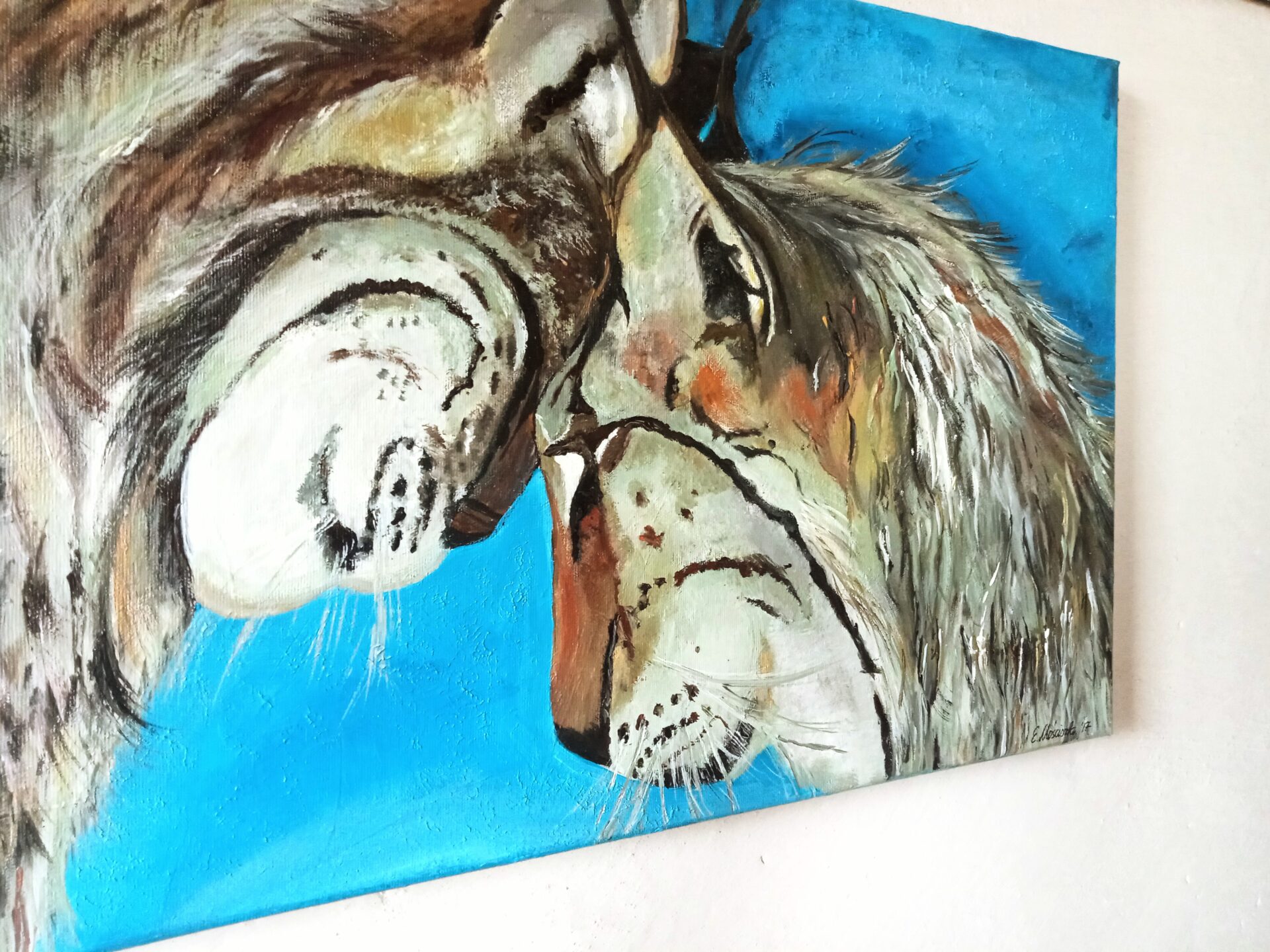 Obraz akrylowy ręcznie malowany na płótnie naciągniętym na bjetram drewniany.