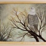 Obraz akrylowy na płycie malarskiej. Wymiary 40 x 50 cm. Oprawiony w naturalną, drewnianą, wąską ramę.