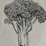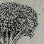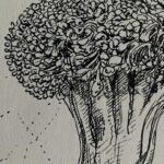 Rysunek piórkiem. Czarny tusz na papierze. Praca z cyklu „Przedmioty w ostrym świetle” . Praca sygnowana podpisem i stemplem.