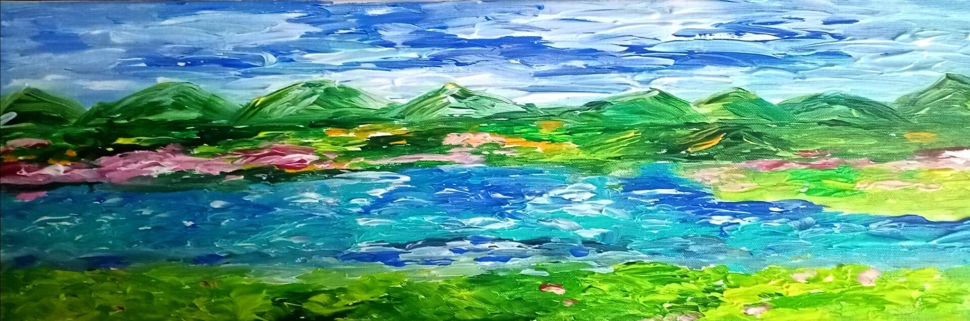 Obraz malowany na bawełnianym podobraziu . Użyte zostały wysokiej jakości farby akrylowe.Wymiary 20 x 60.Do pracy dołączam certyfikat. Obraz jest sygnowany i zawerniksowany. Boki zamalowane w tonacji obrazu.