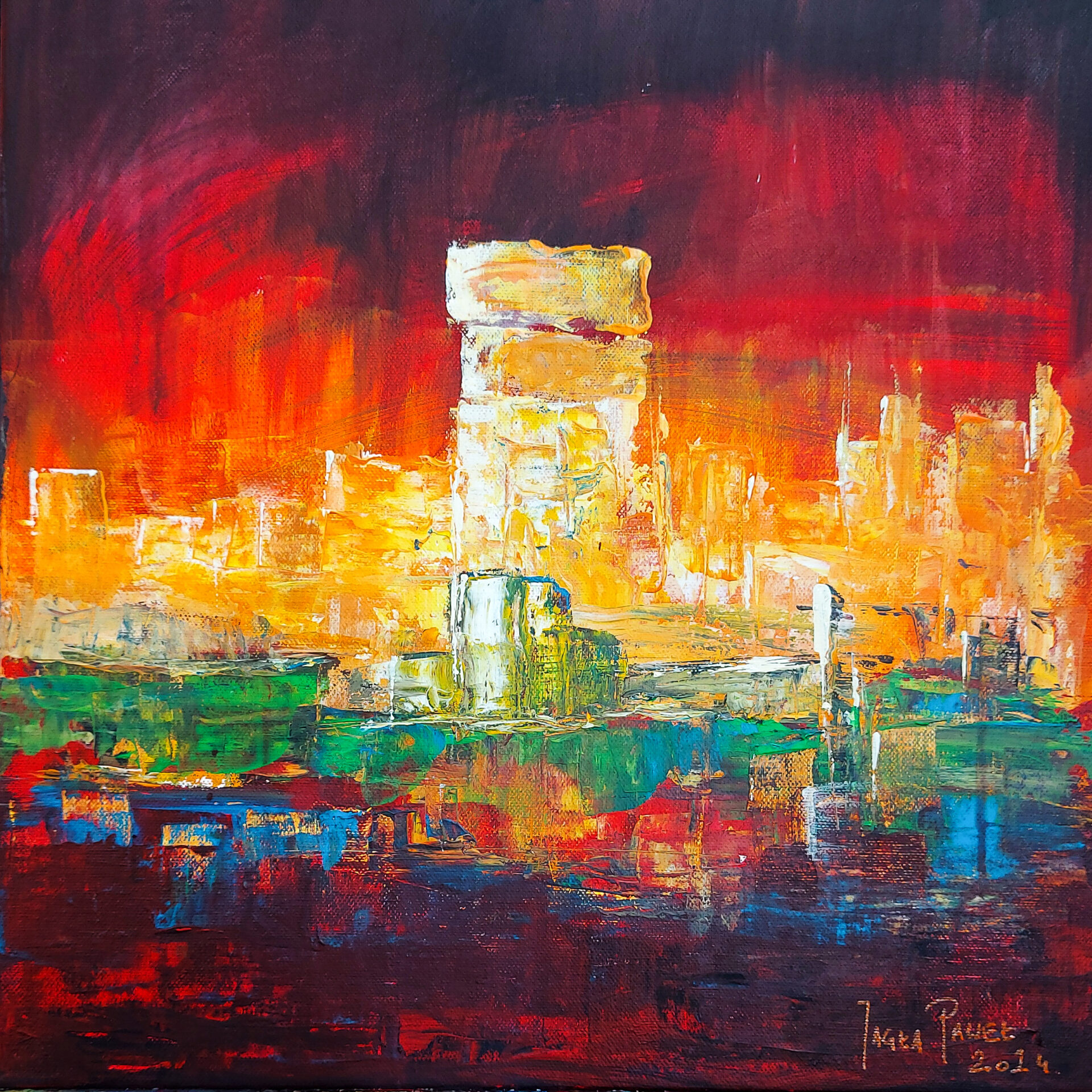 Obraz autorski Paweł Jagła akrylowe farby Maxi Acril „Renesans” praca werniksowana gotowa do zawieszenia z zamalowanymi bokami…Płótno bawełniane 380gr/m2Wymiar 40 x 40 cm