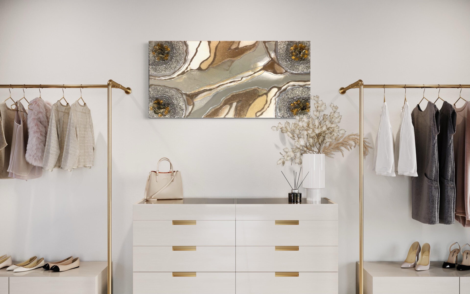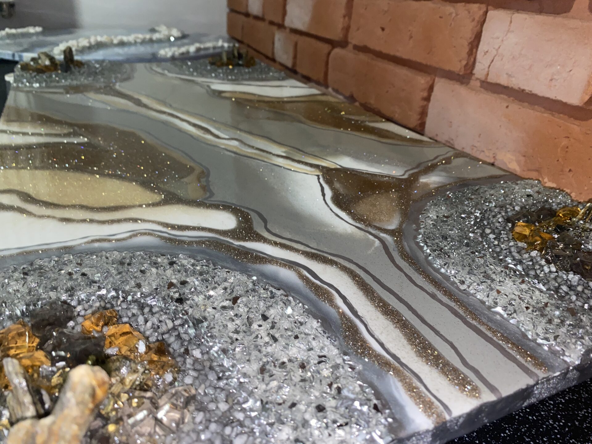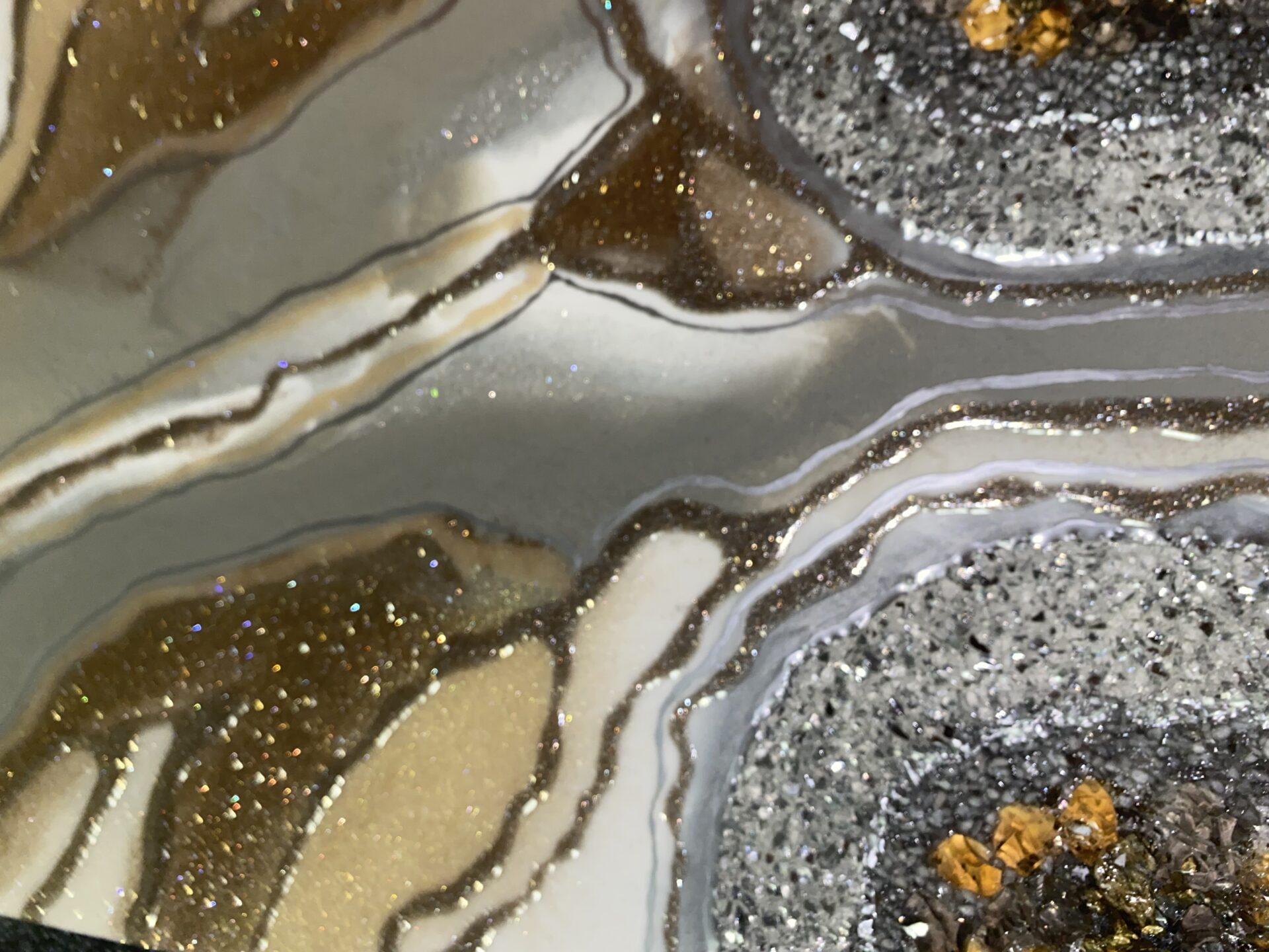 Zachęcam do zobaczenia obrazu w postaci filmiku na moim ig, zdjęcia nie uchwyciły, jak ten obraz się mieni, wręcz jak by był żywy. Nawet przy minimalnym oświetlaniu błyszczy się w elegancki sposób.