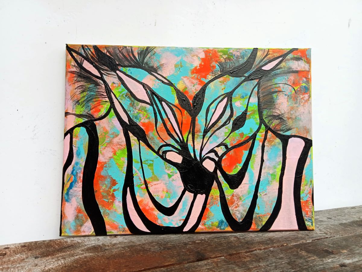 Obraz ręcznie malowany na płótnie naciągniętym na sosnowy blejtram.