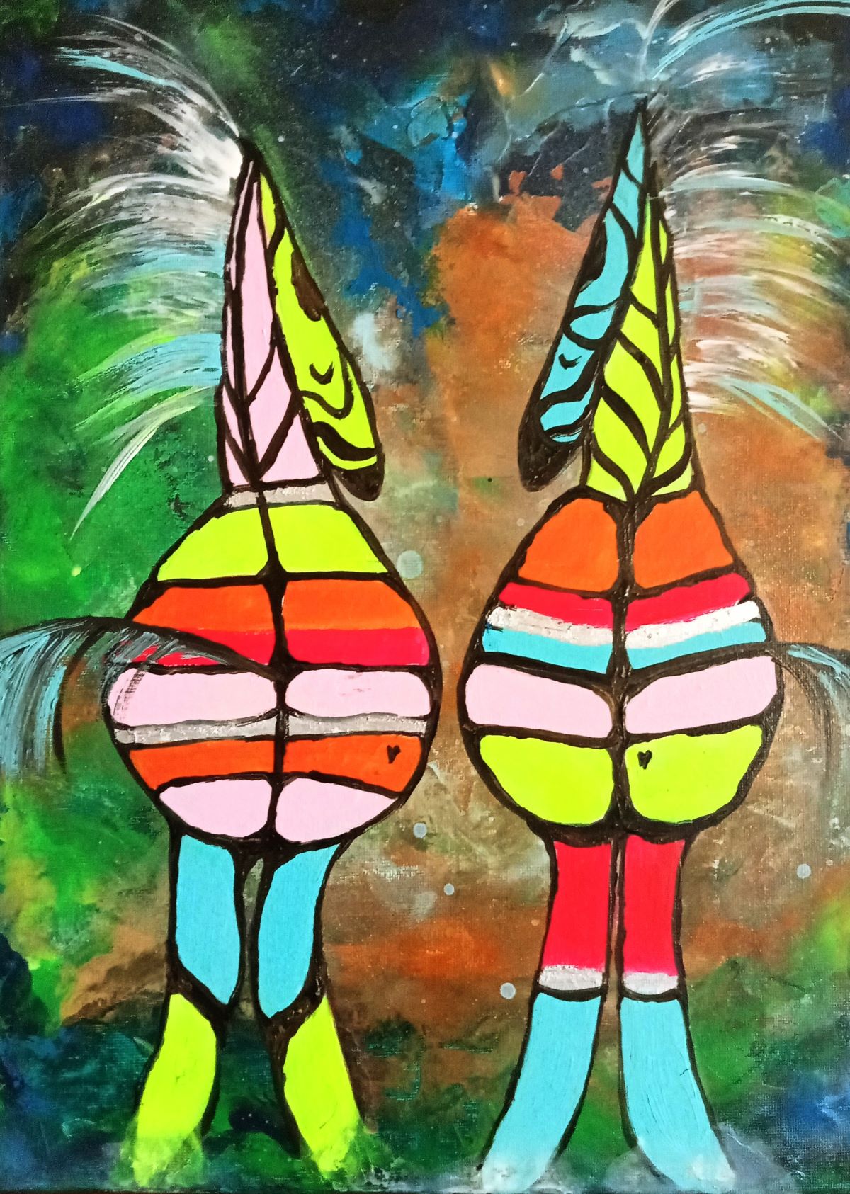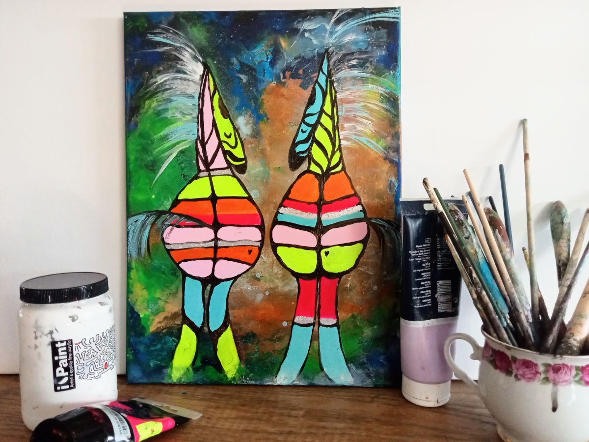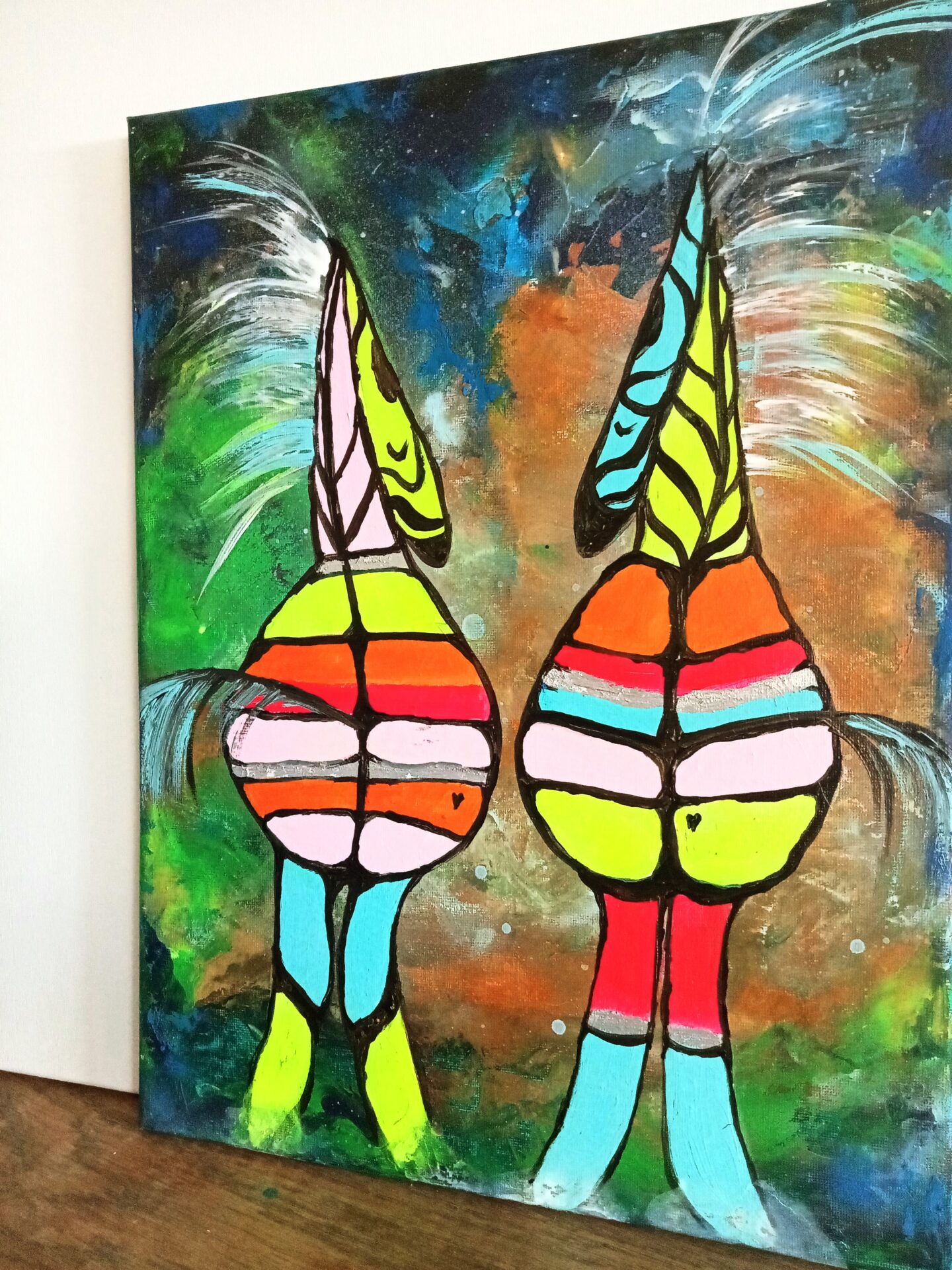 Obraz akrylowy ręcznie malowany na płótnie naciągniętym na bjetram drewniany.