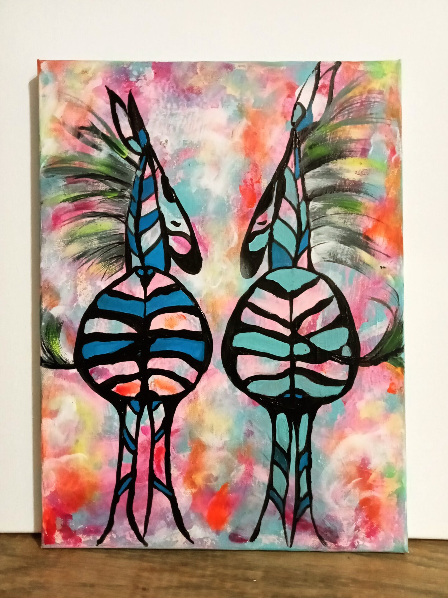 Obraz akrylowy ręcznie malowany na płótnie naciągniętym na bjetram drewniany.