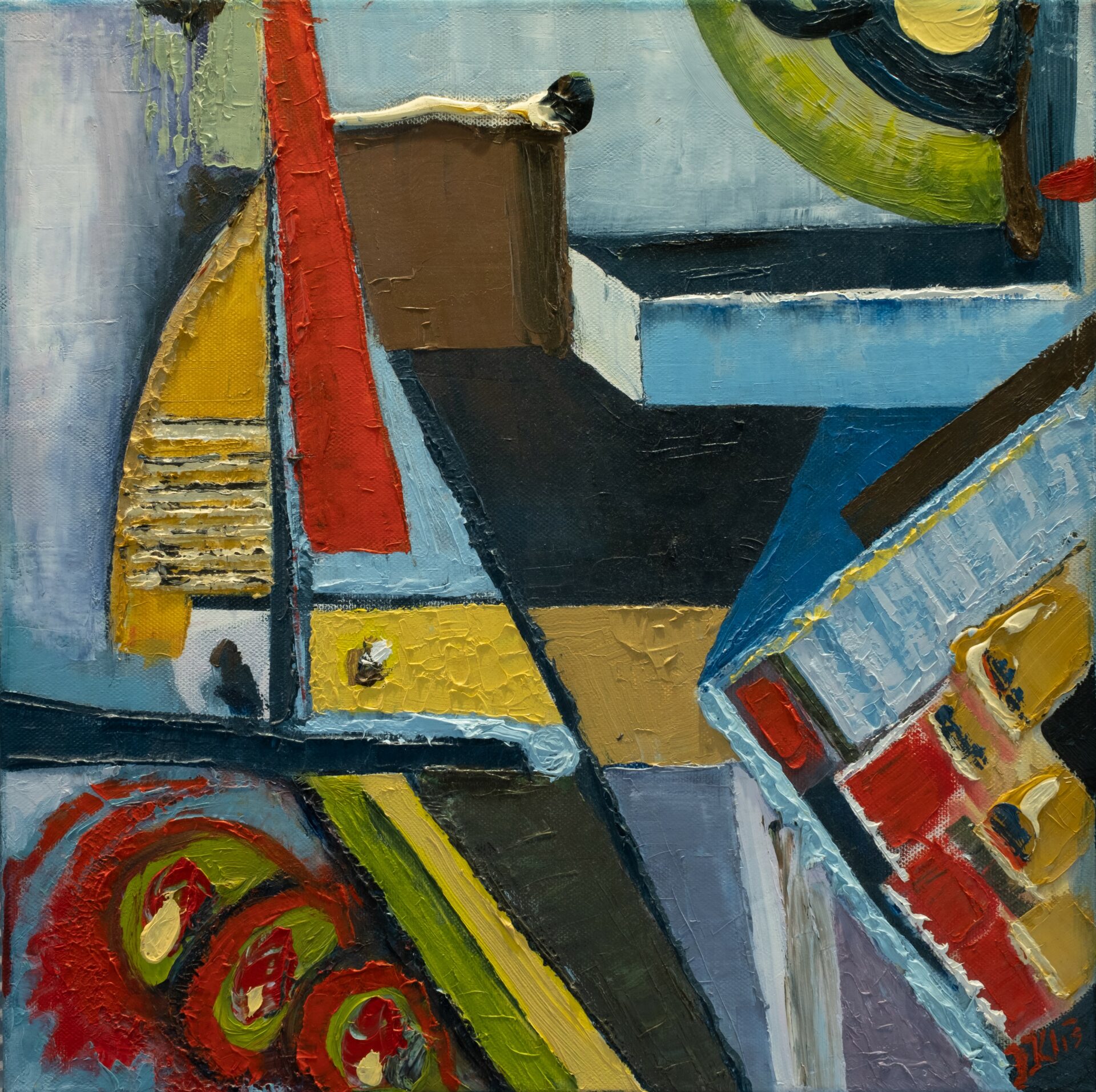 Abstrakcja-olej na płótnie , boki zamalowane, zabezpieczony werniksem, gruba faktura.